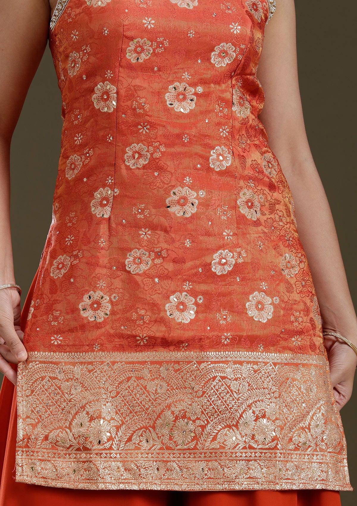 Orange Cutdana Brocade Readymade Salwar Suit