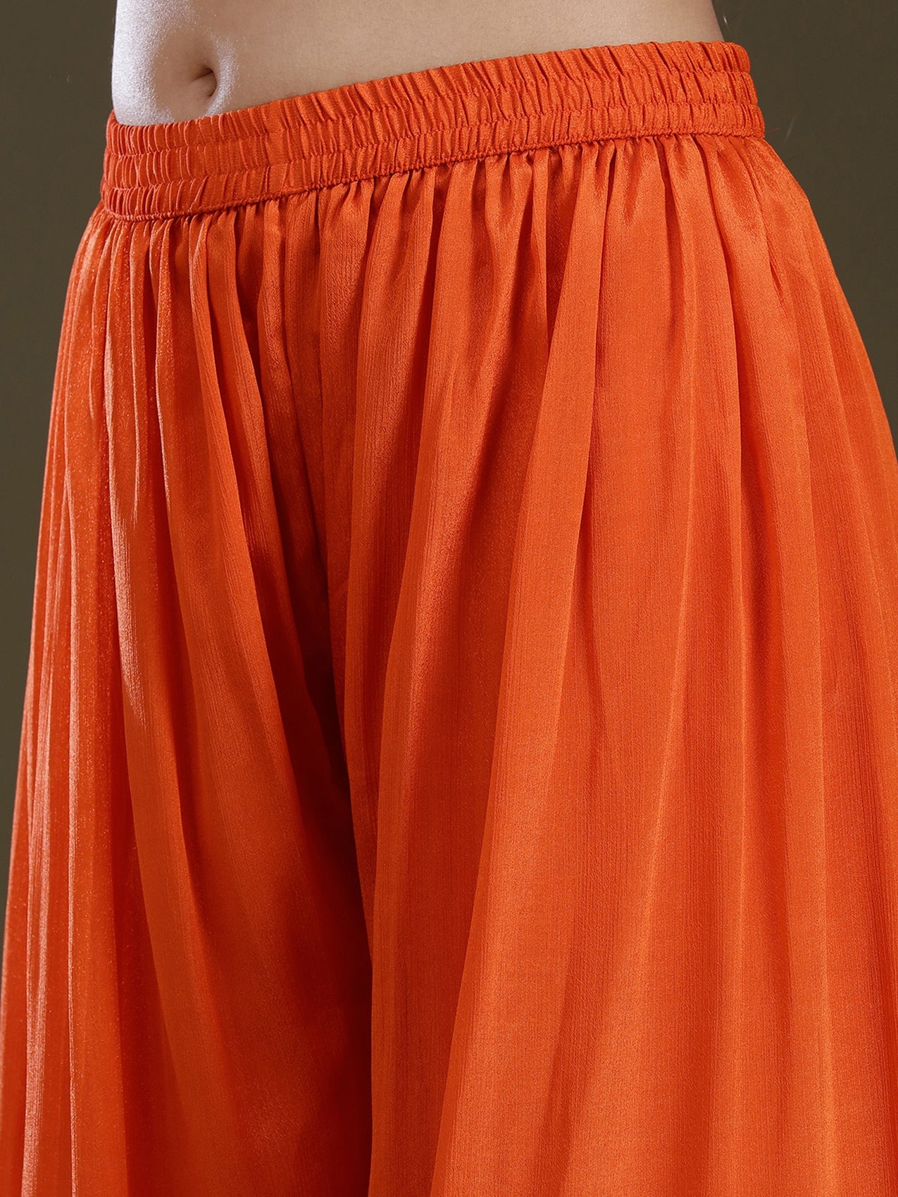 Orange Zariwork (Gold) Chinon Readymade Salwar Suit
