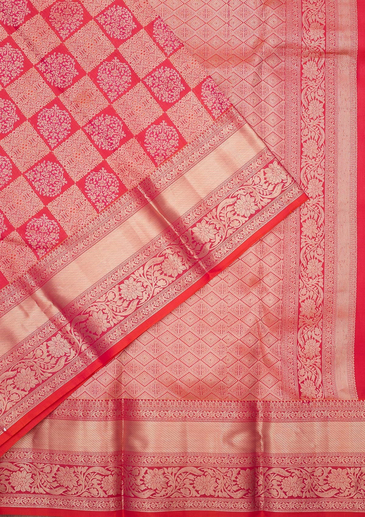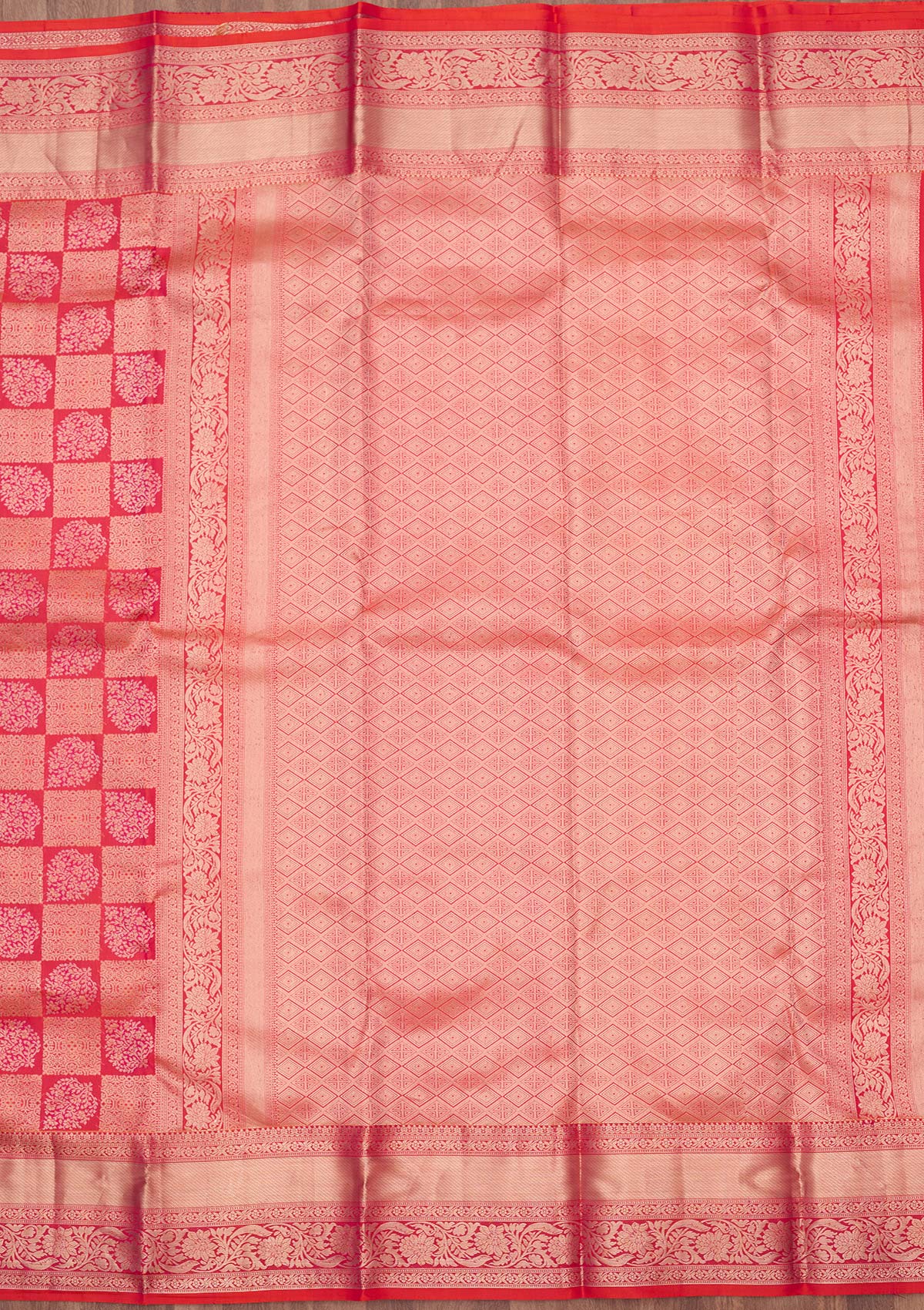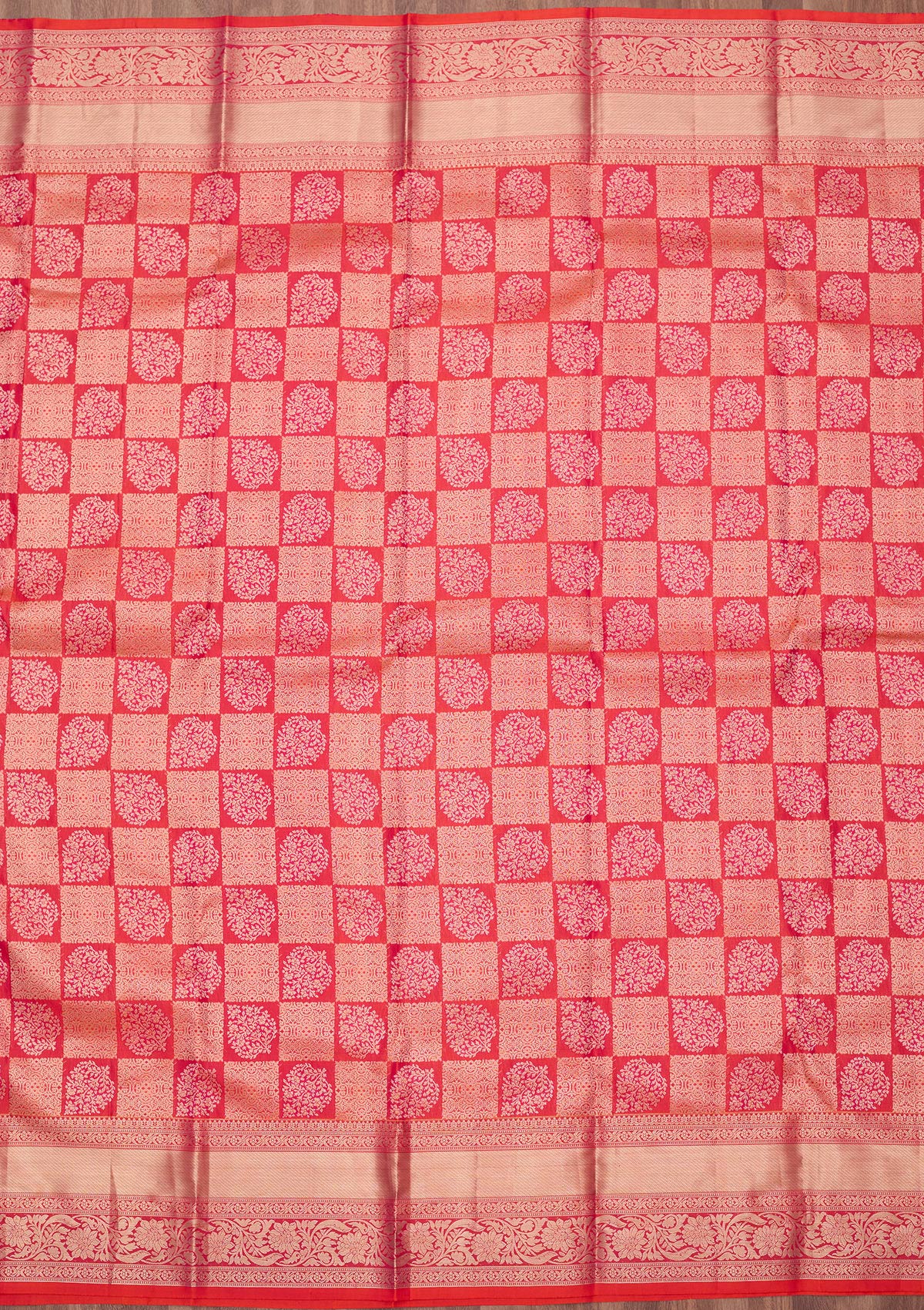 Orange Silk_Saree in Silk fabric. The Silk_Saree is elevated with Zariwork (Gold) embroidery. It comes with an Unstitched blouse. Comes with the Koskii promise of premium quality.