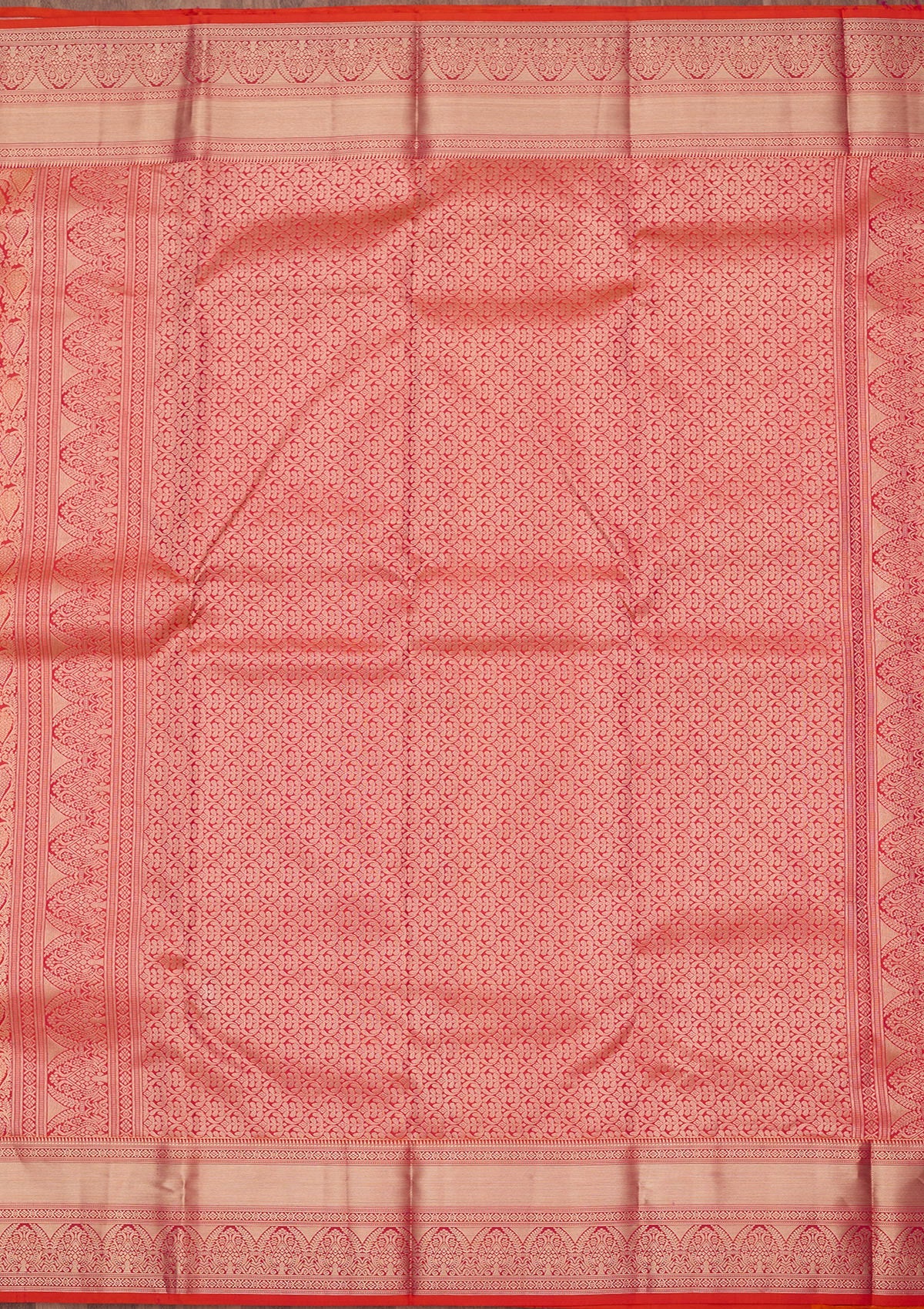 Orange Silk_Saree in Silk fabric. The Silk_Saree is elevated with Zariwork (Gold) embroidery. It comes with an Unstitched blouse. Comes with the Koskii promise of premium quality.