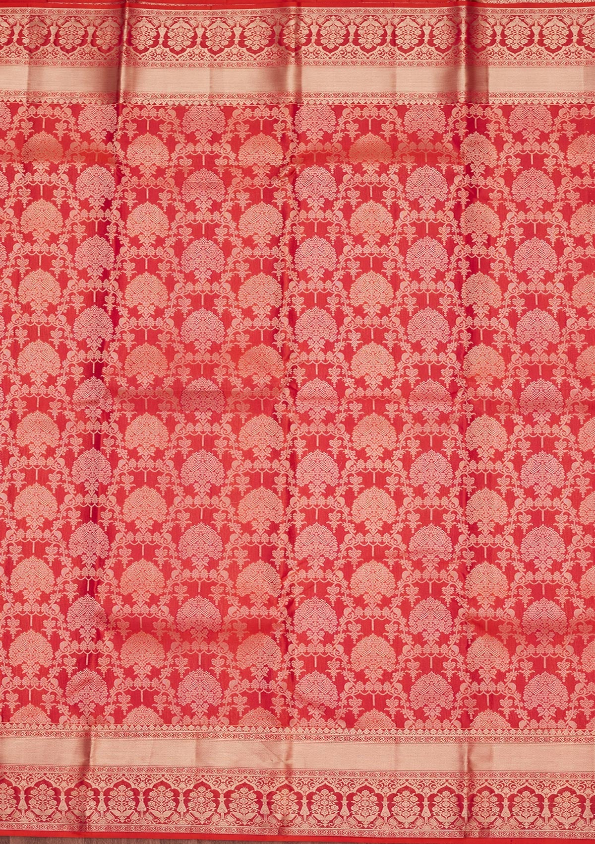 Orange Silk Saree in Pure Silk fabric. The Silk Saree is elevated with Zariwork embroidery. It comes with an Unstitched blouse. Comes with the Koskii promise of premium quality.