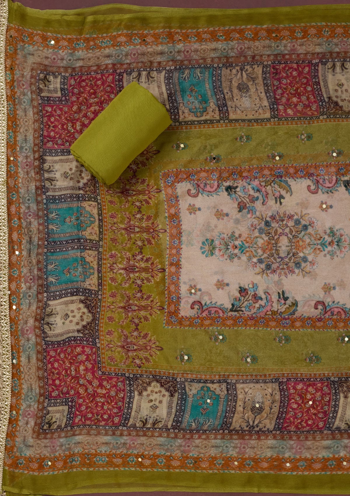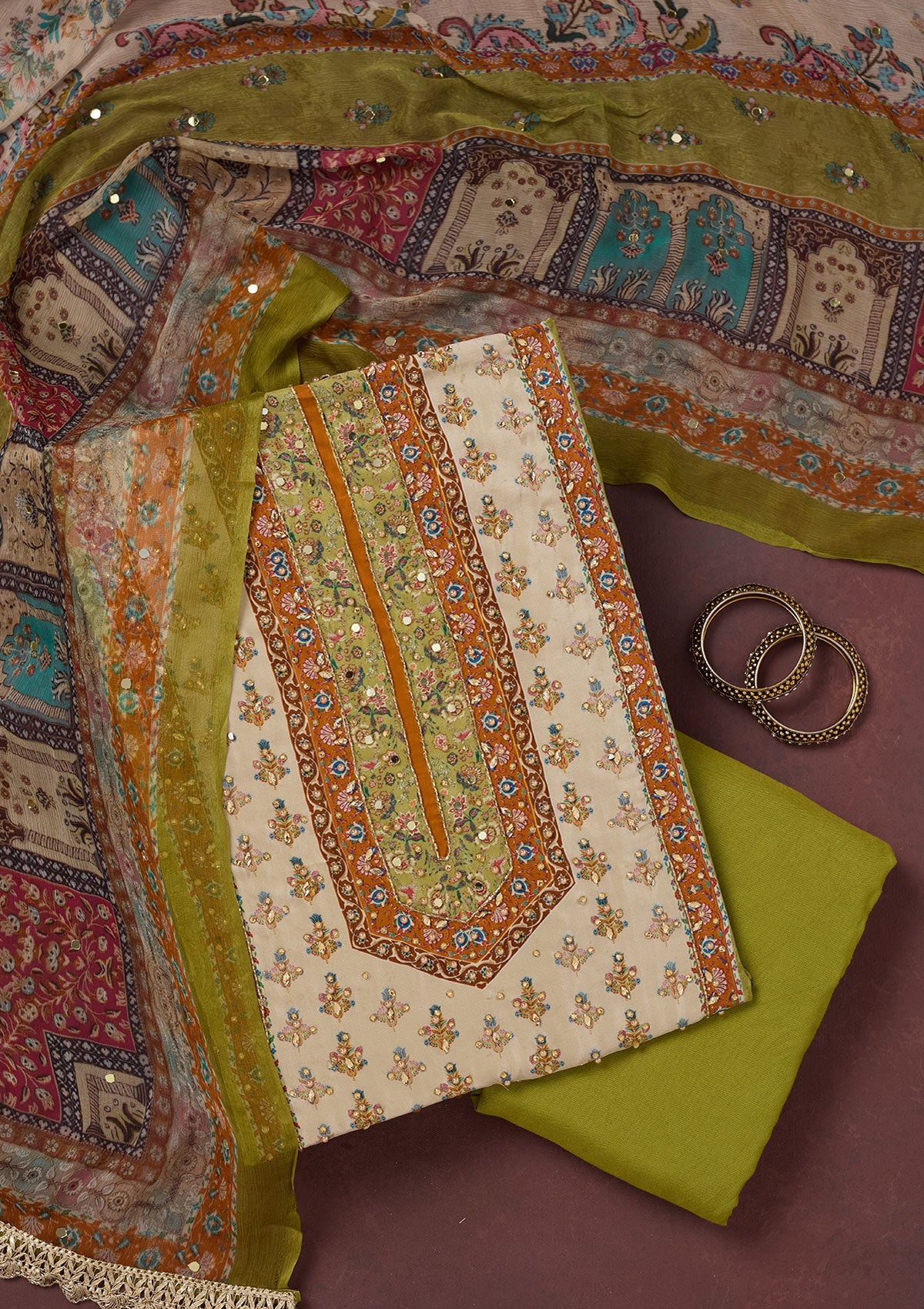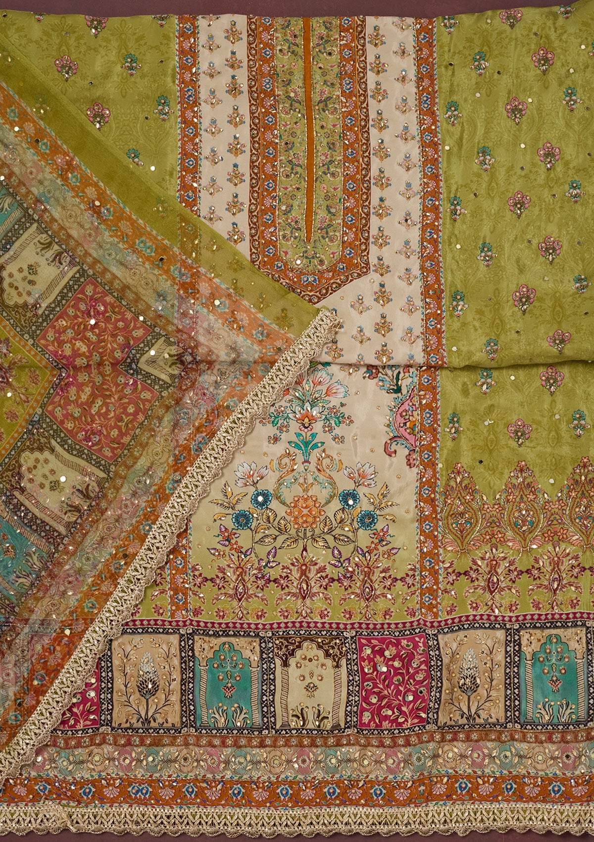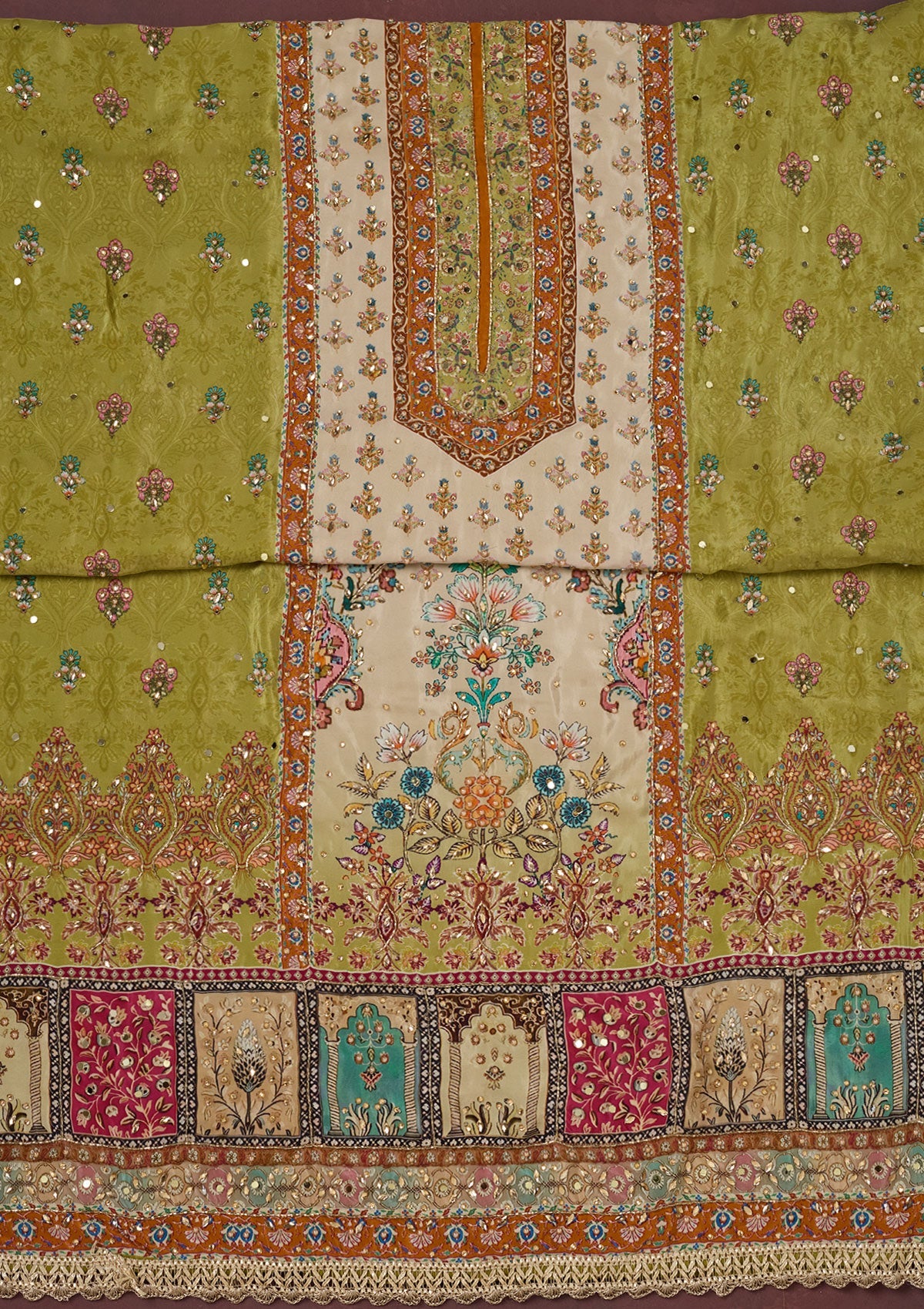 Parrot Green Cutdana Semi Crepe Unstitched Salwar Suit