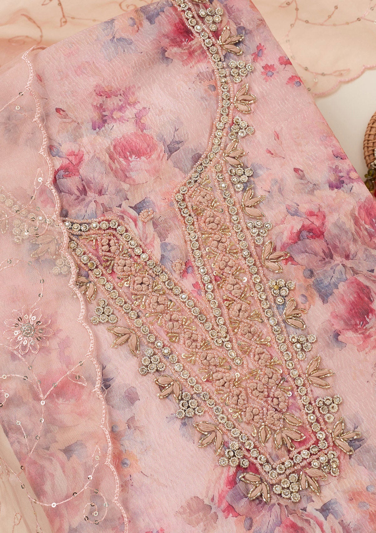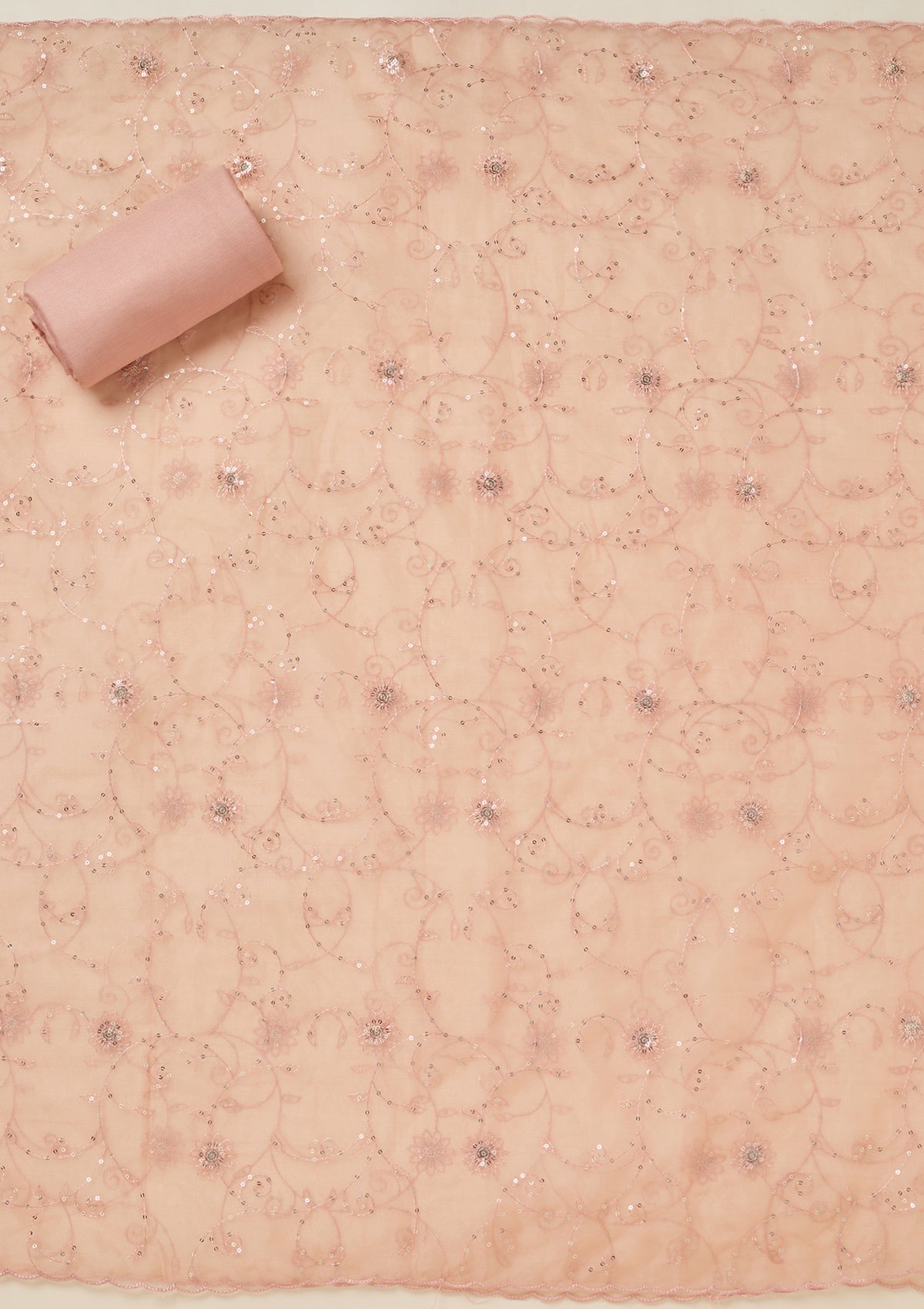 Peach Aariwork Tissue Unstitched Salwar Suit