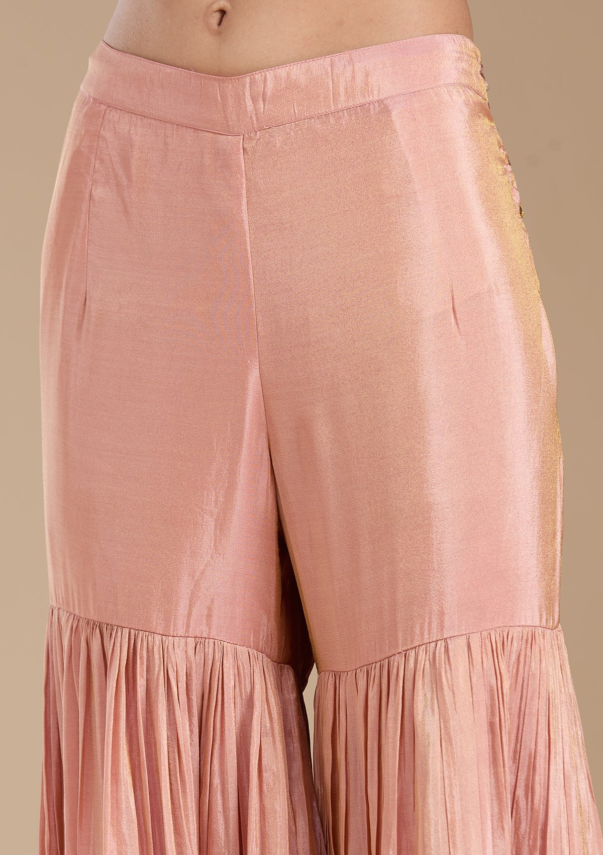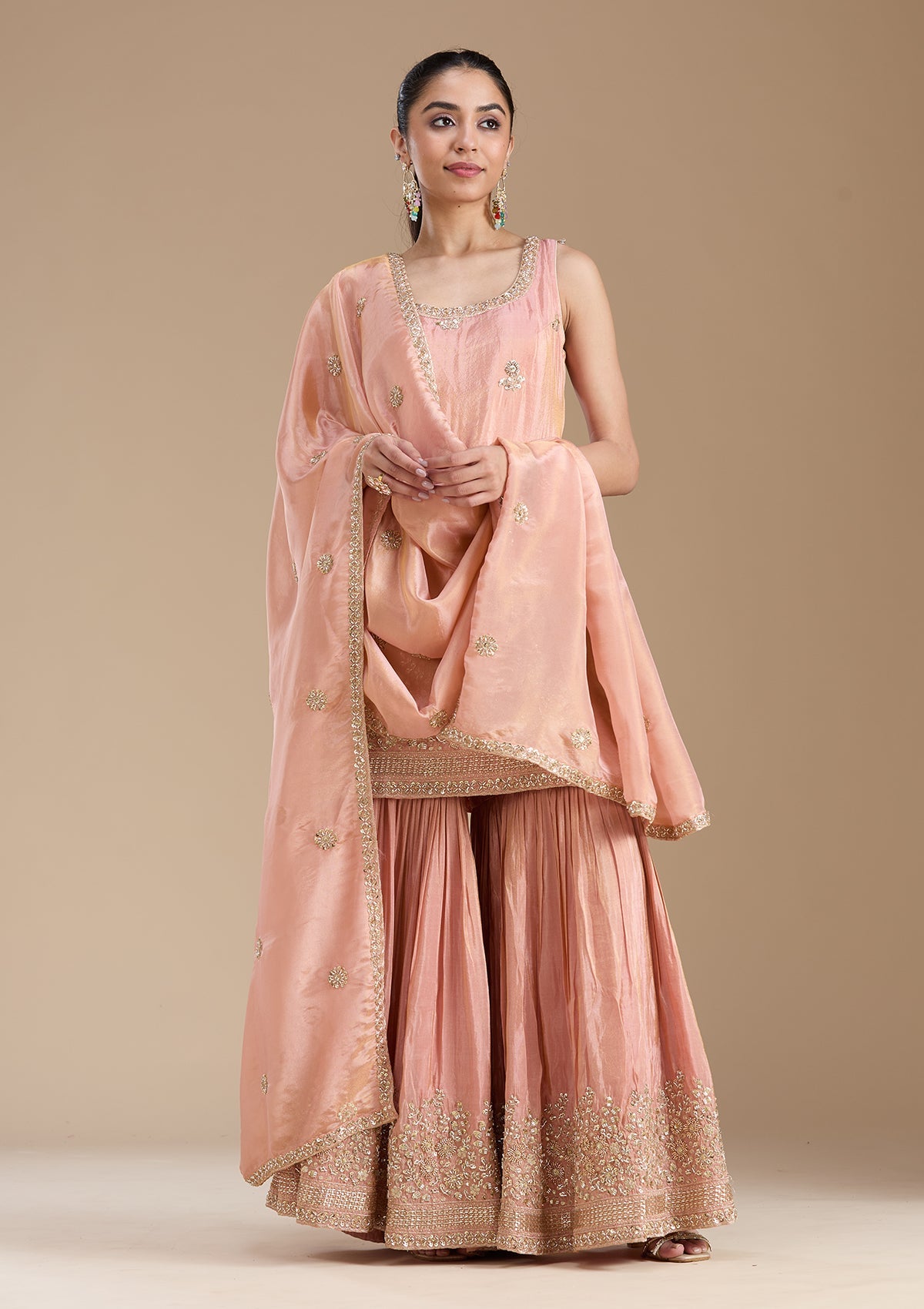 Peach Salwar Suit in Tissue fabric. The Salwar Suit is embellished with Sequins embroidery. Accompanied with a bottom and dupatta. Comes with the Koskii promise of premium quality.