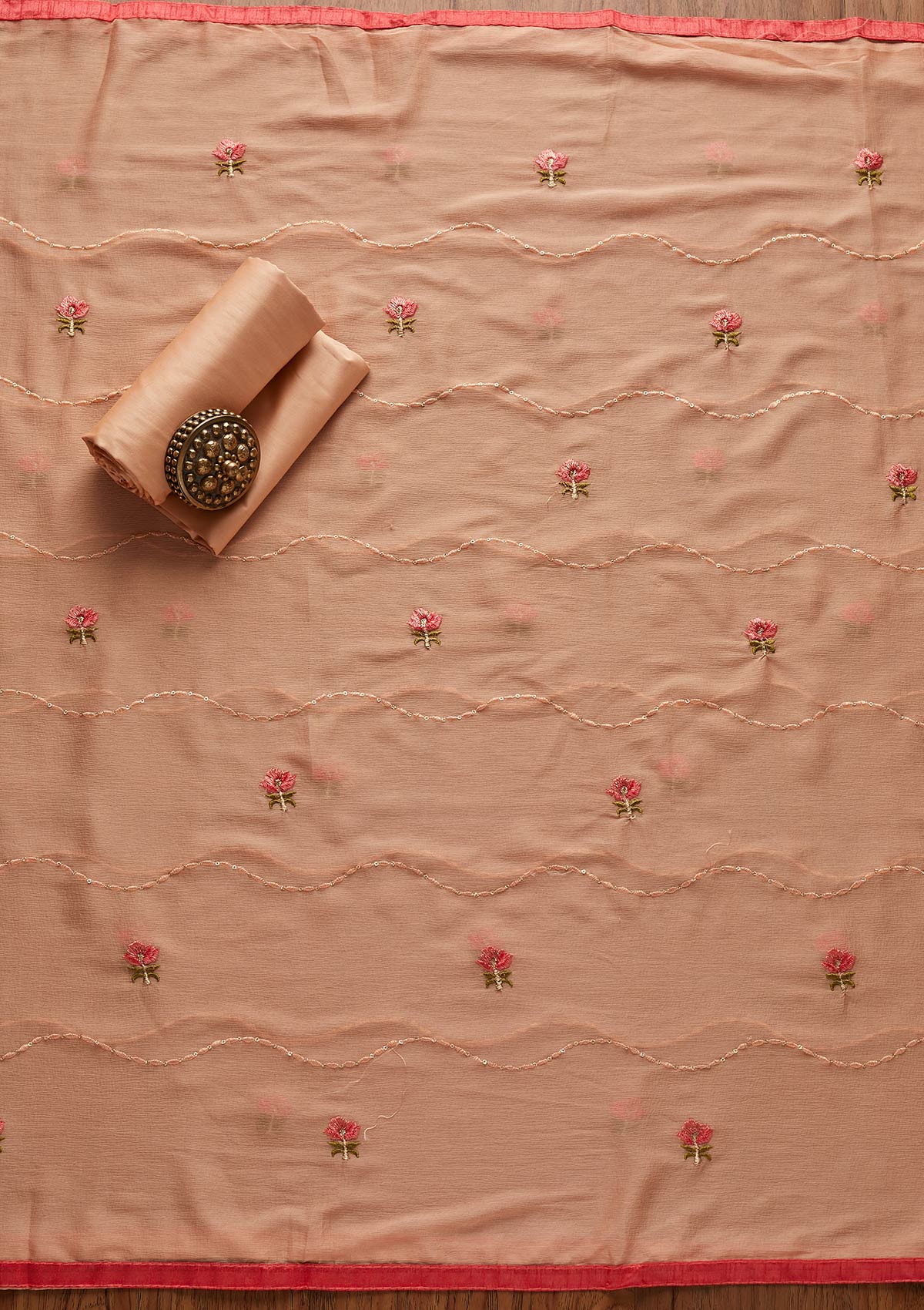 Peach Salwar Suit In Cotton Fabric. The Salwar Suit Is Embellished With Threadwork Embroidery. Accompanied with an unstitched bottom and dupatta. Comes With The Koskii Promise Of Premium Quality.