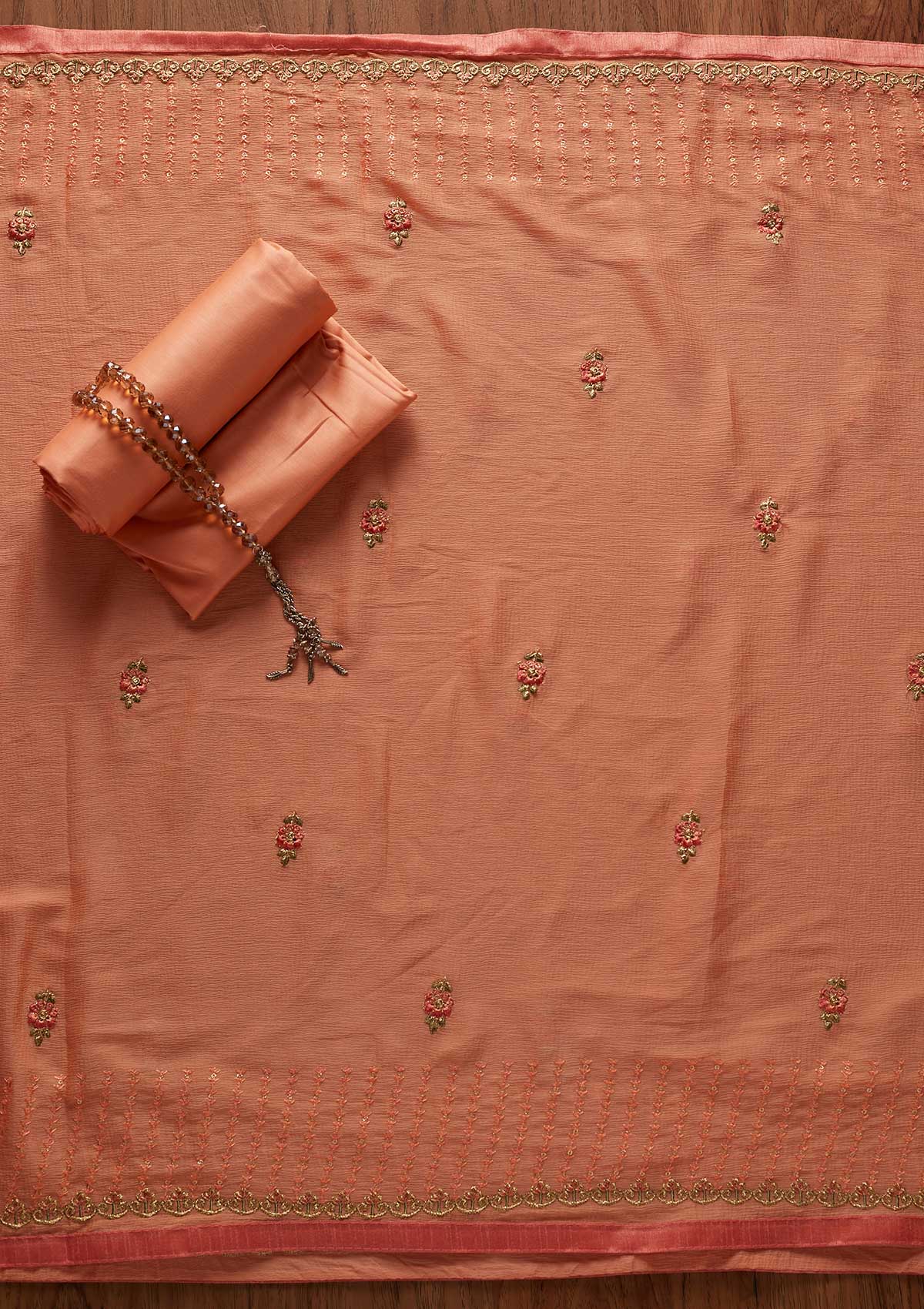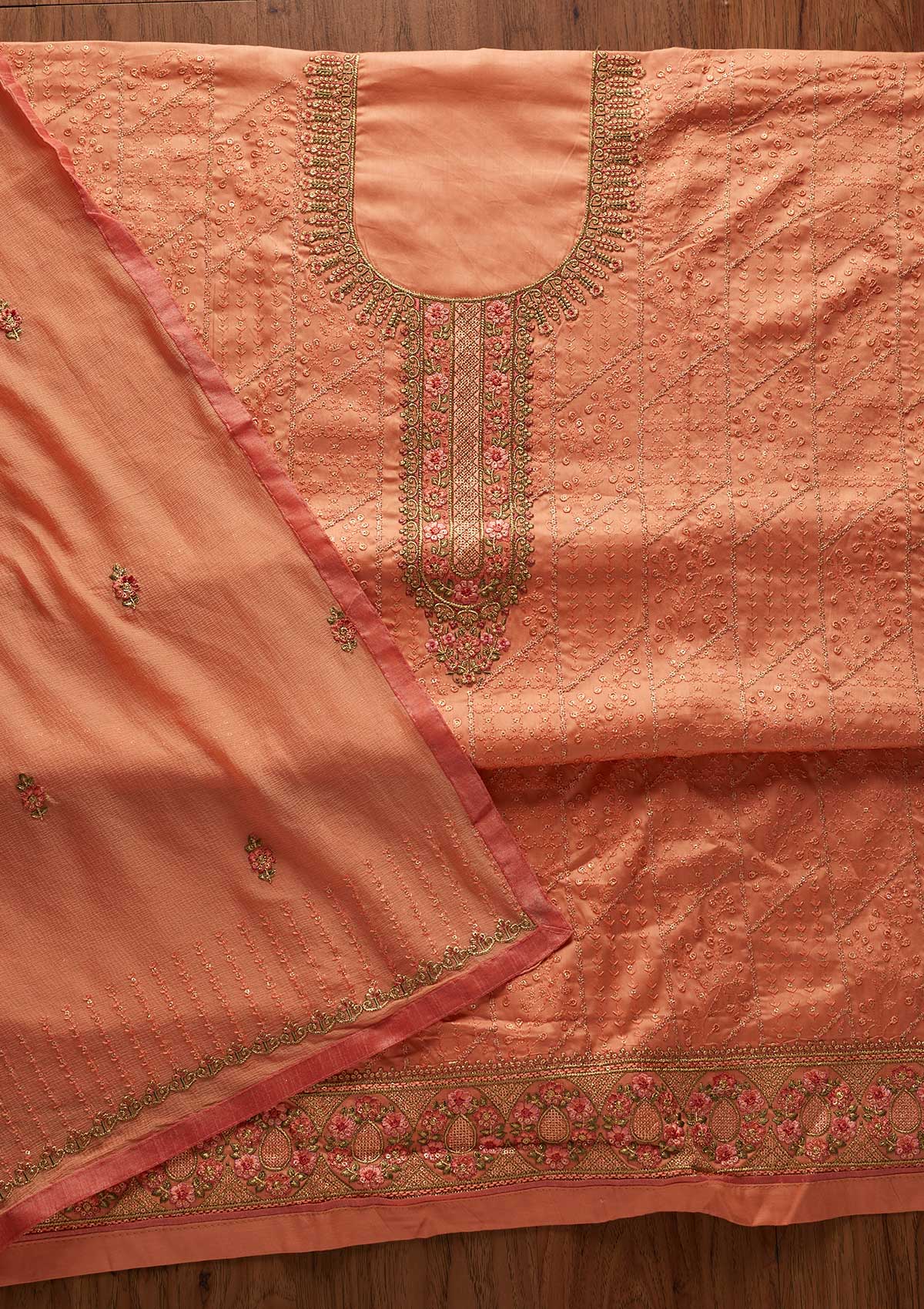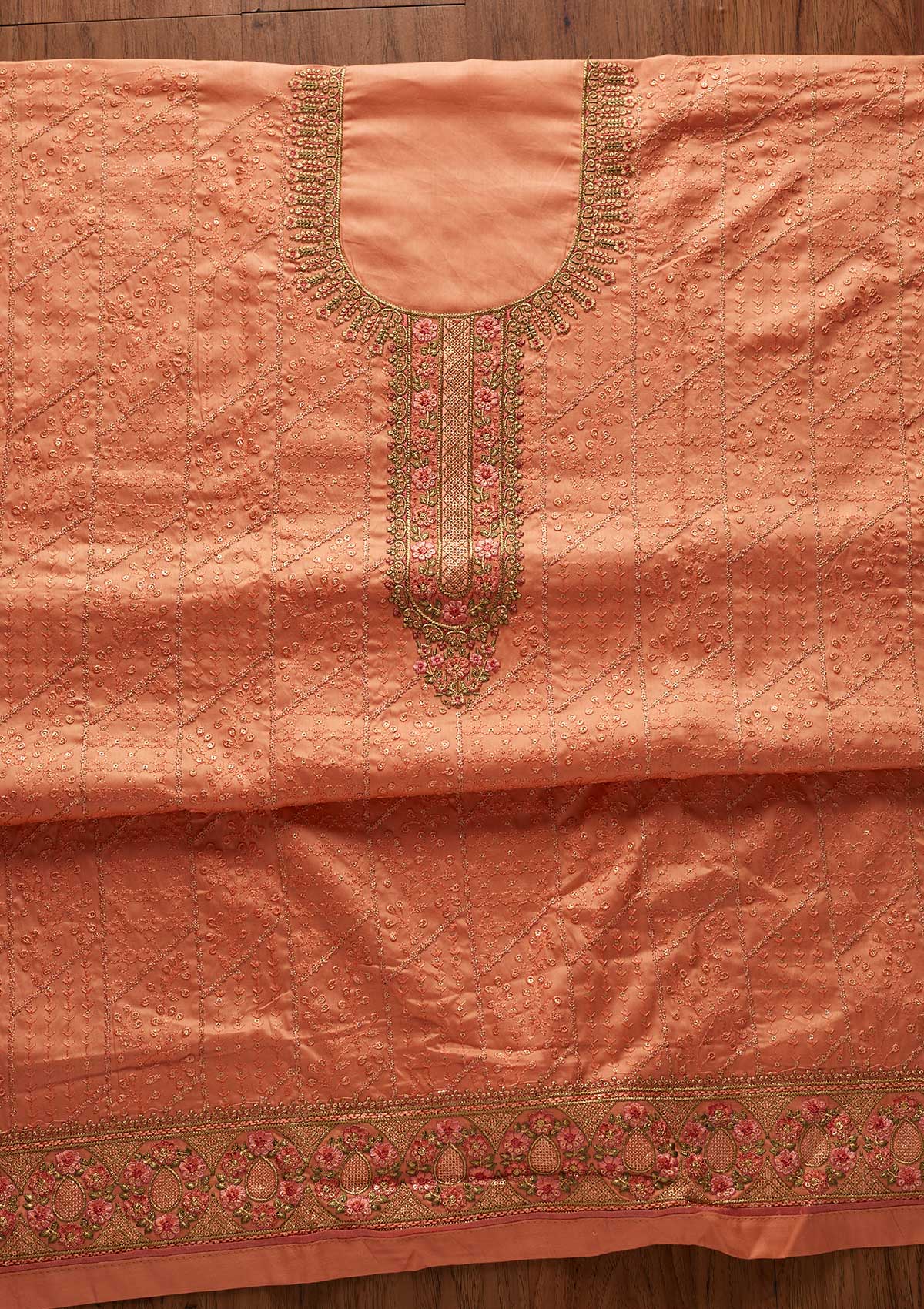 Peach Threadwork Cotton Unstitched Salwar Suit