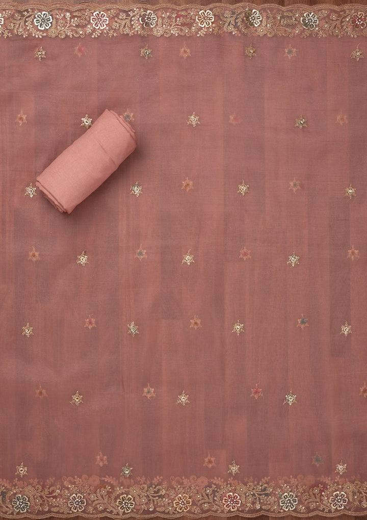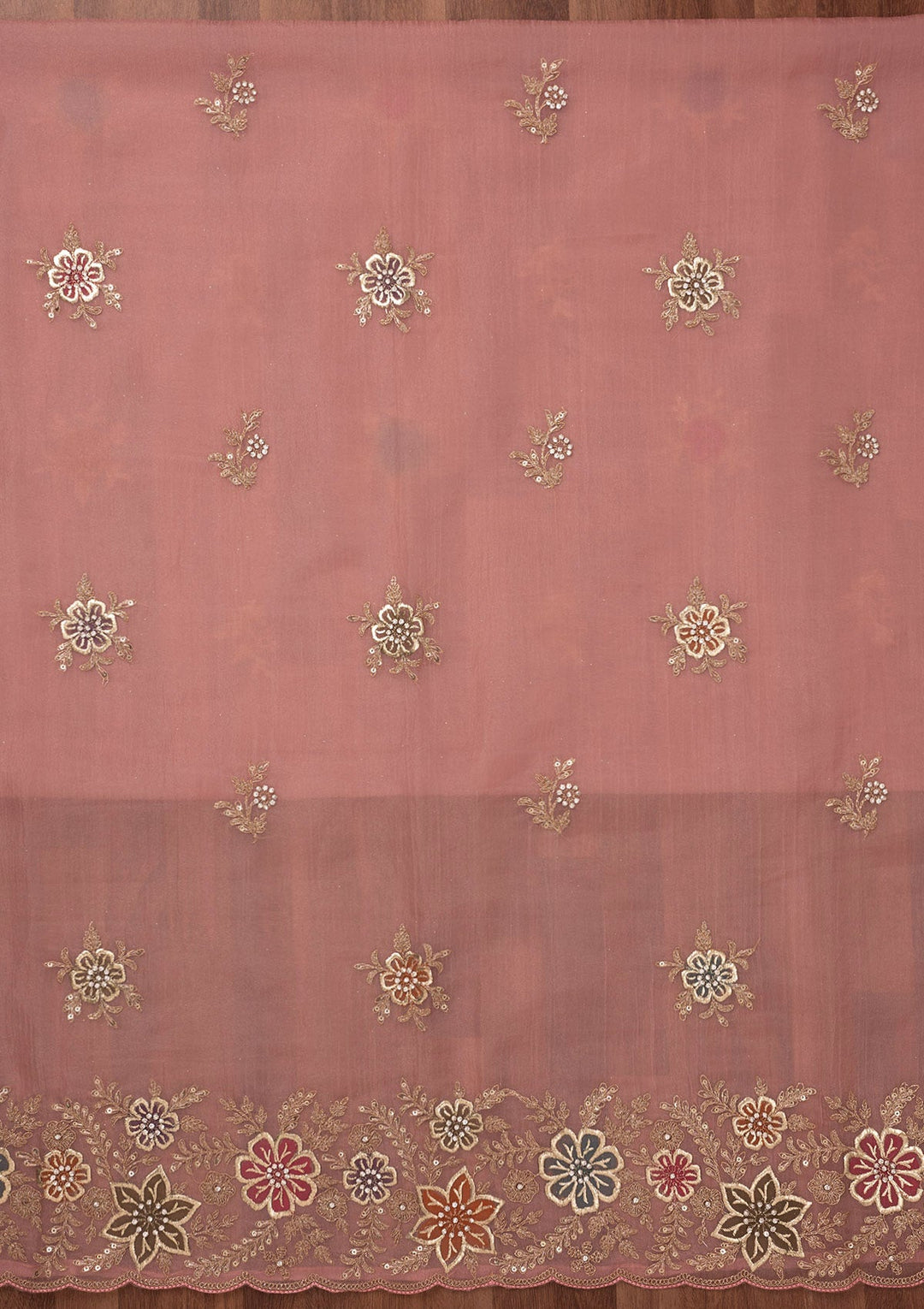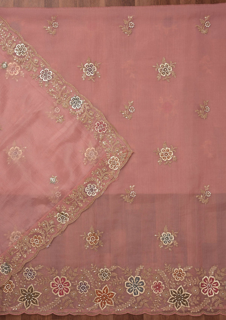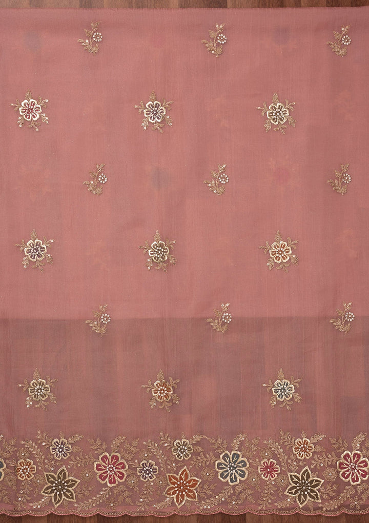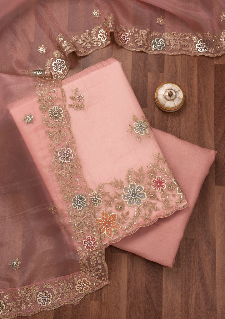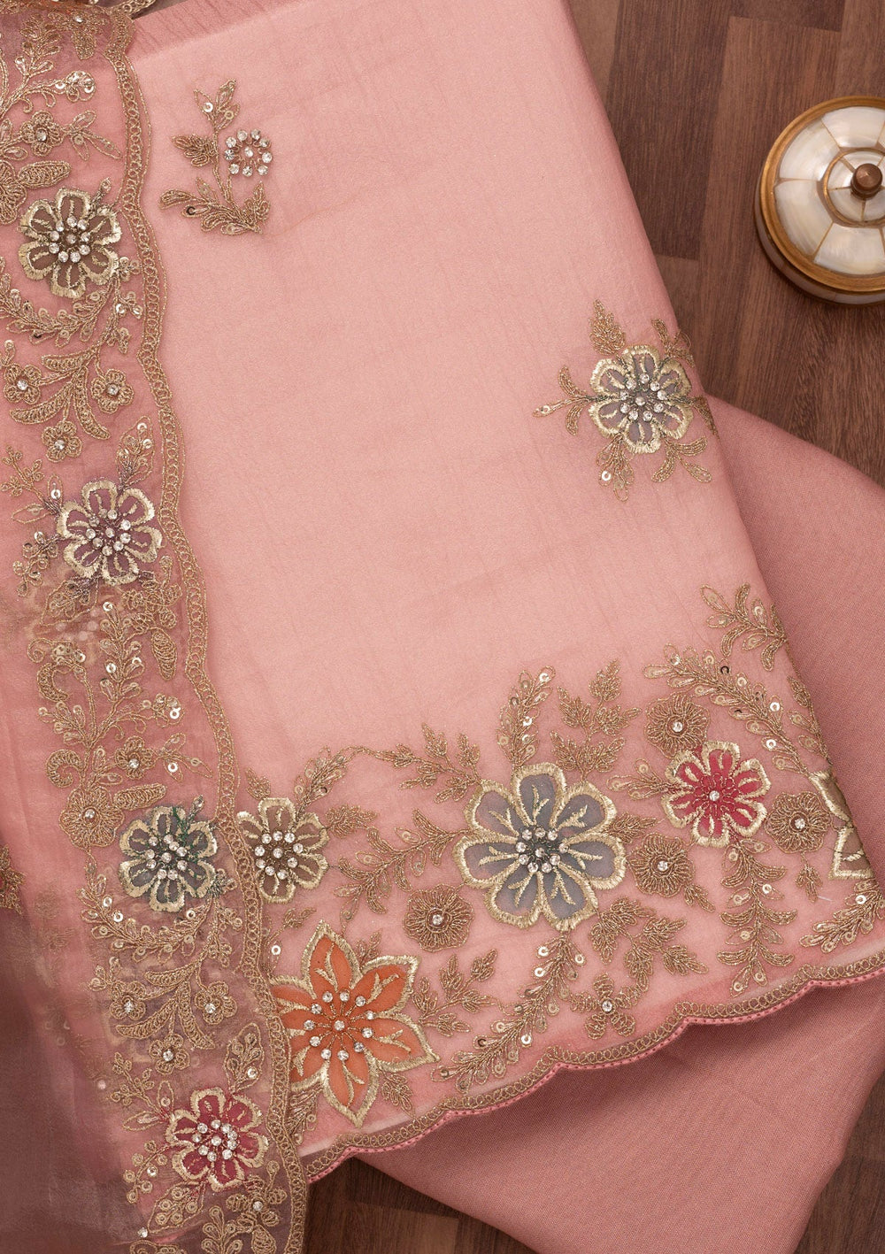 Peach Zariwork Semi Crepe Unstitched Salwar Suit
