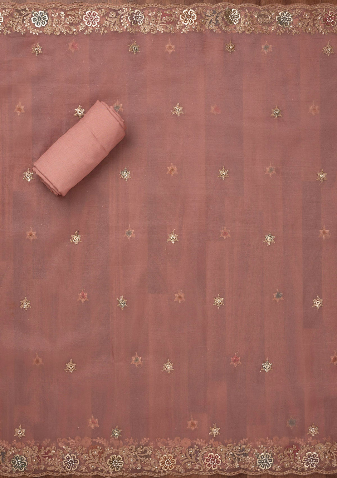 Peach Salwar Suit in Semi Crepe fabric. The Salwar Suit is embellished with Zariwork embroidery. Accompanied with a bottom and dupatta. Comes with the Koskii promise of premium quality.