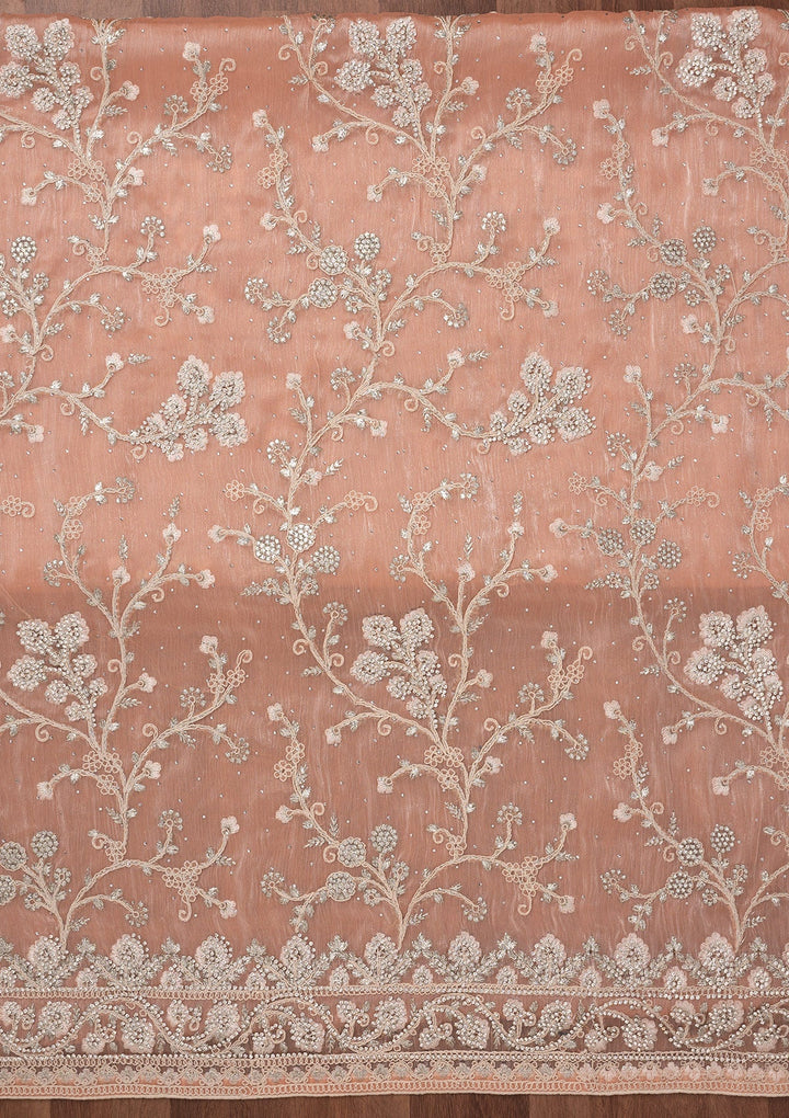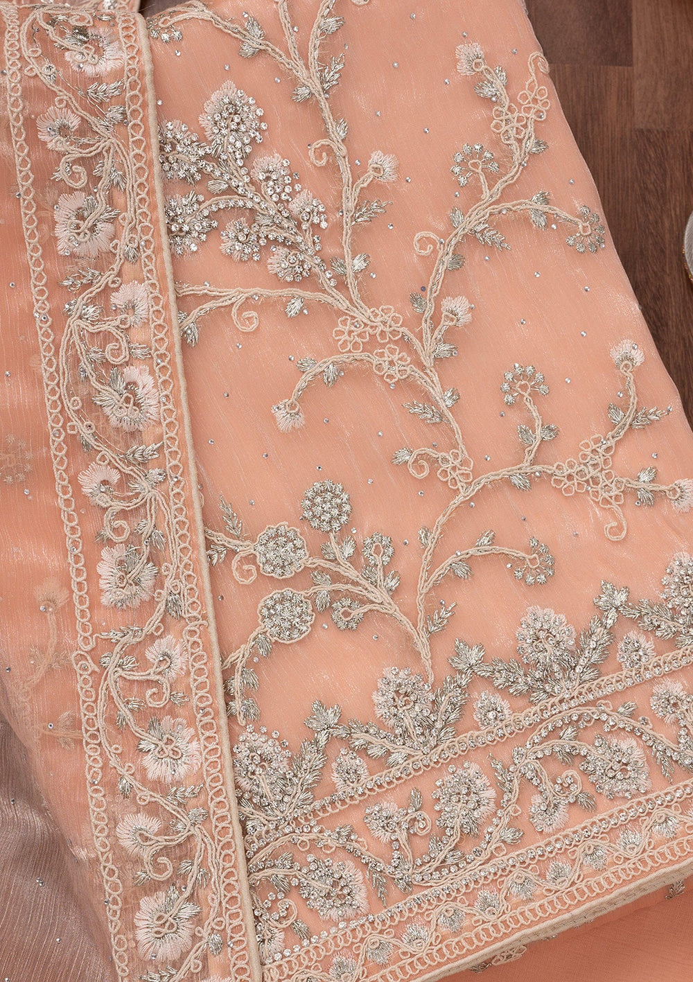 Peach Zariwork Semi Crepe Unstitched Salwar Suit