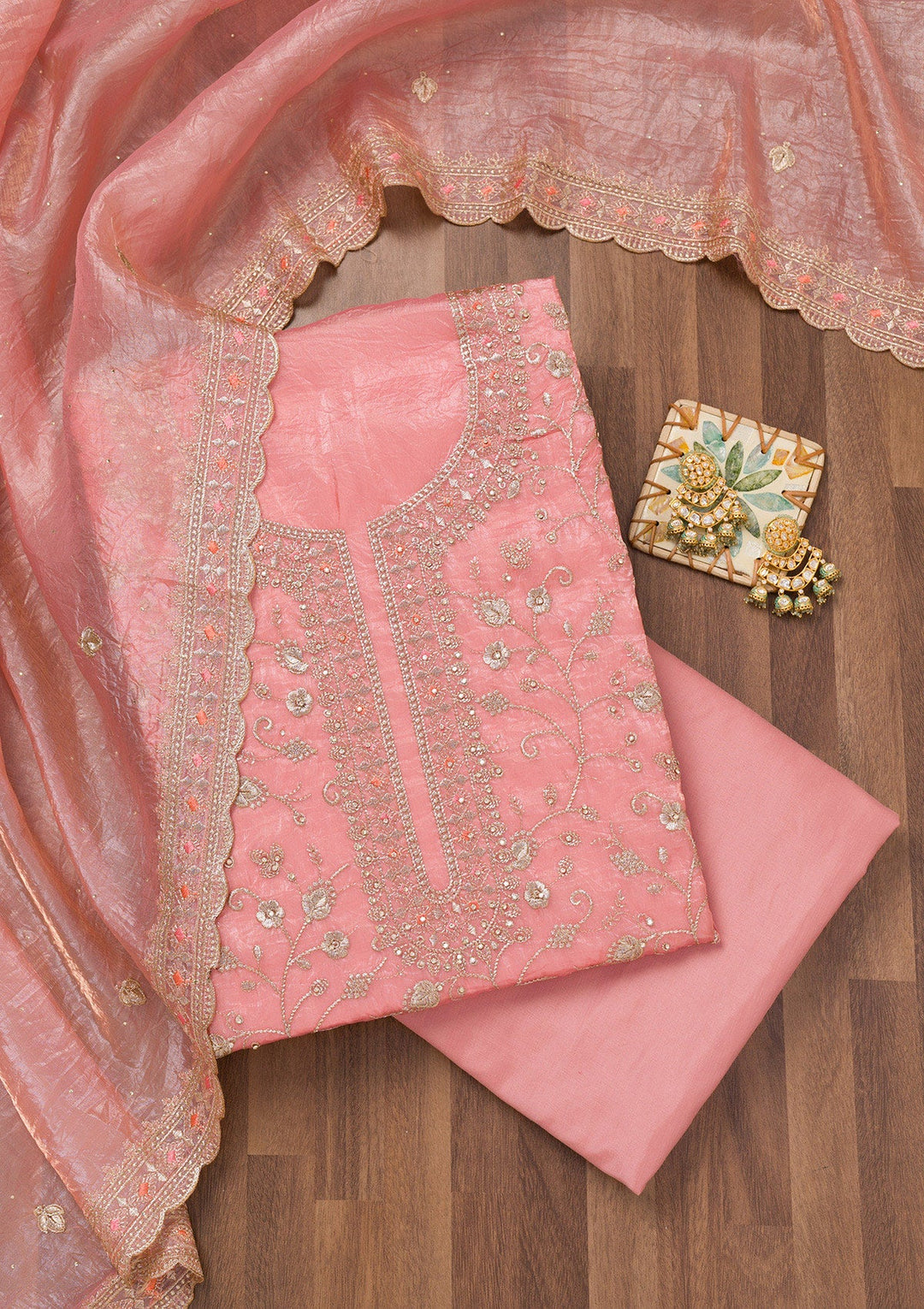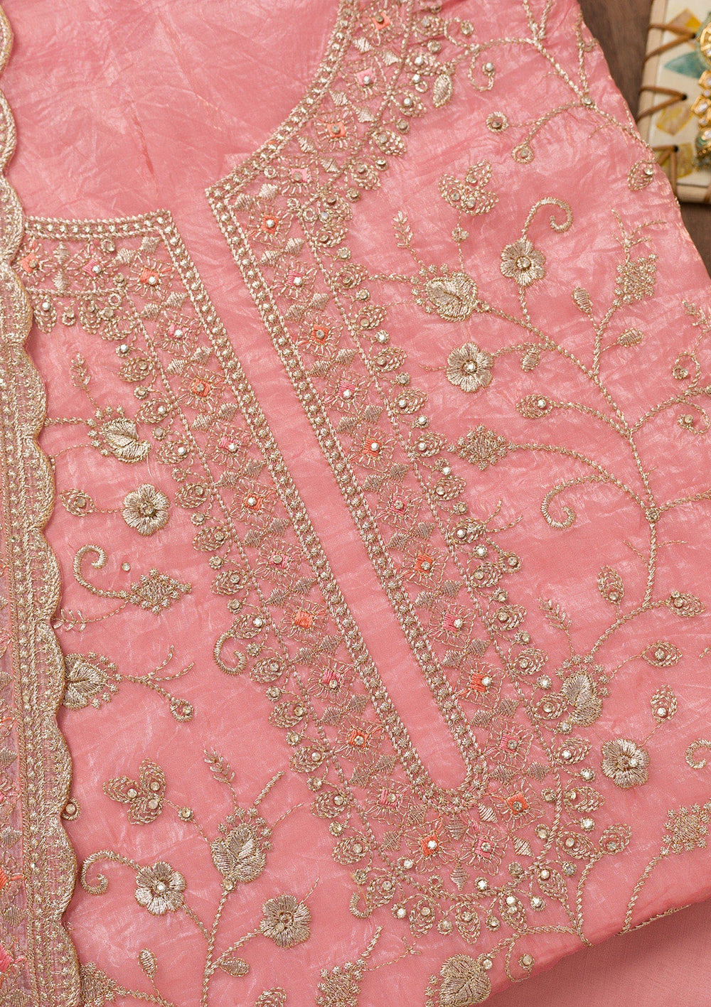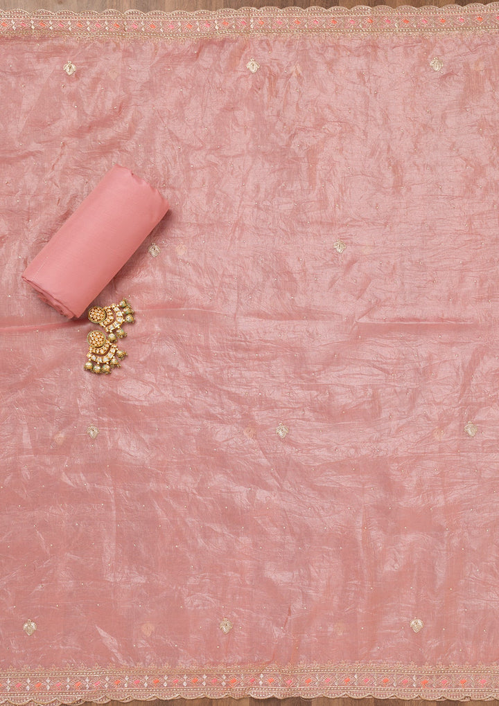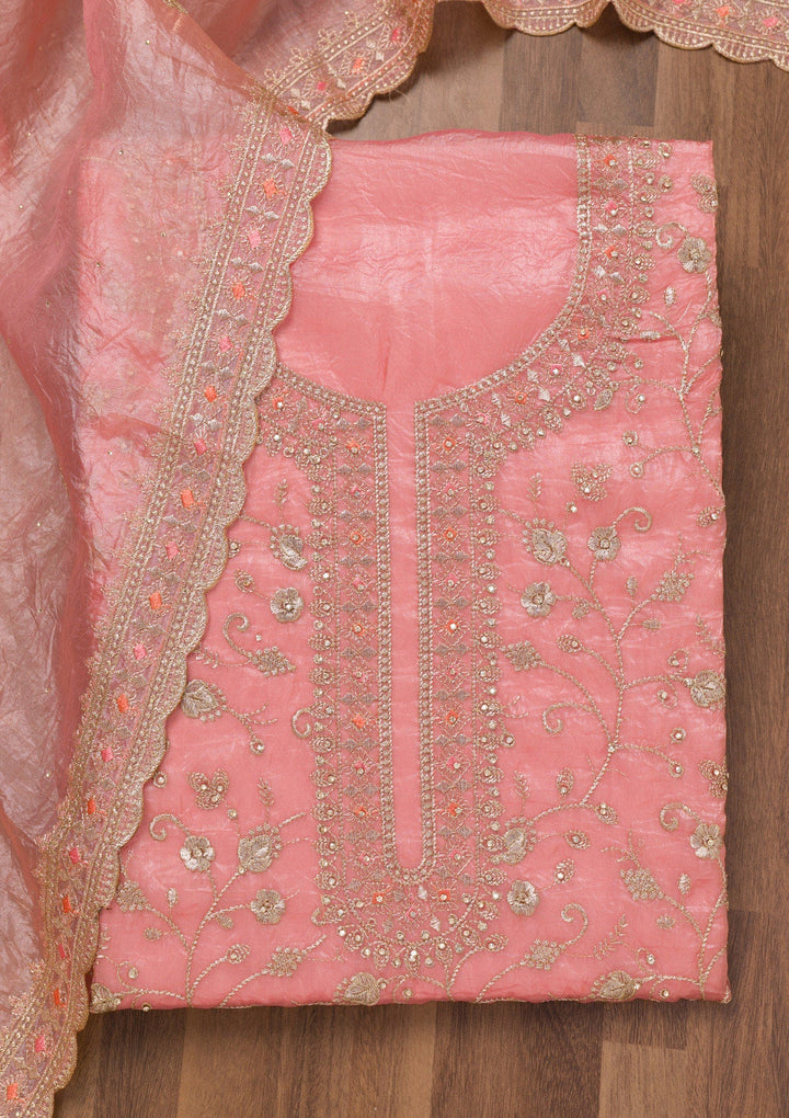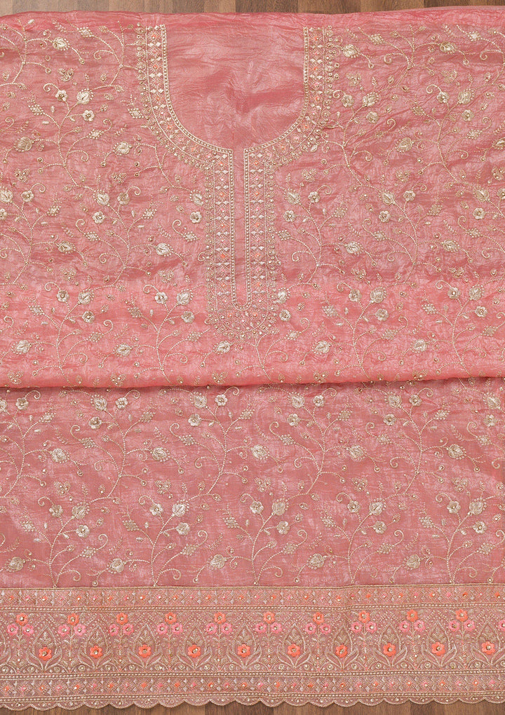 Peach Zariwork Tissue Unstitched Salwar Suit