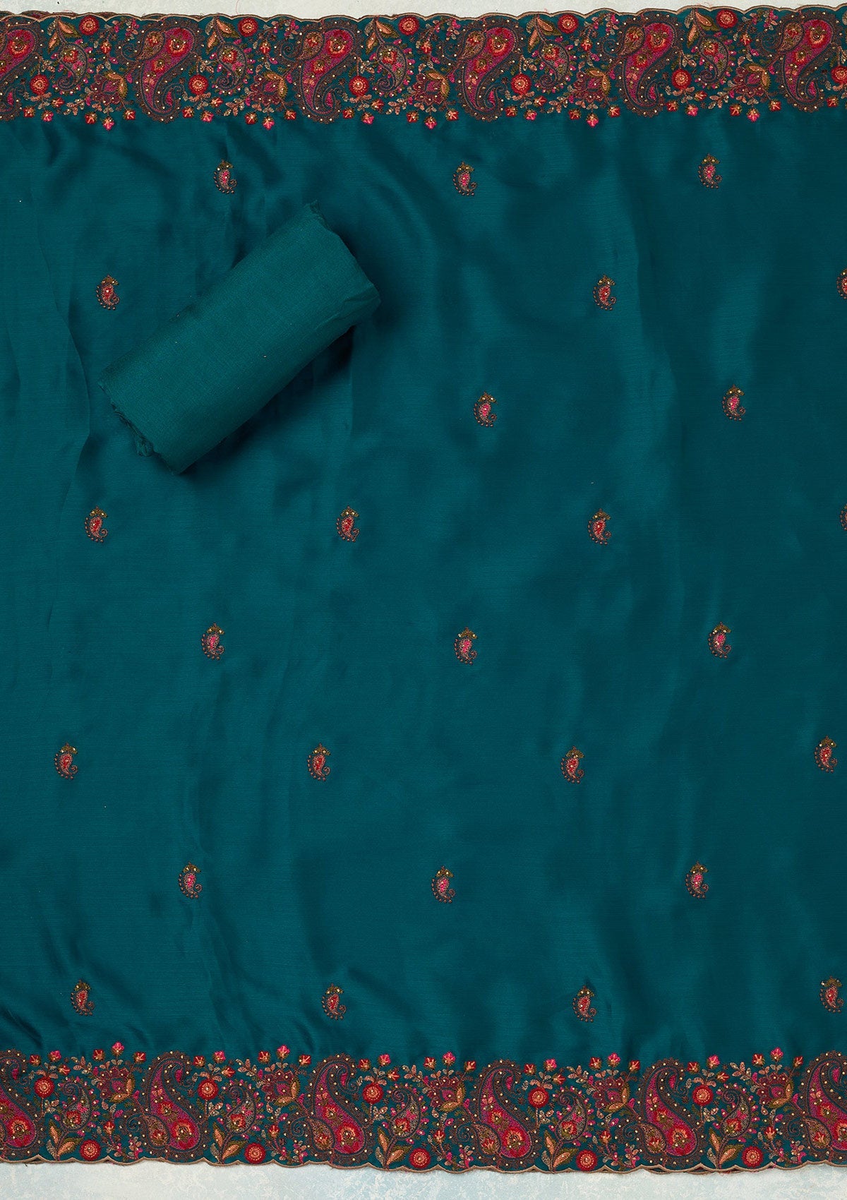 Peacock Blue Salwar Suit in Semi Crepe fabric. The Salwar Suit is embellished with Kashmiri embroidery. Accompanied with a bottom and dupatta. Comes with the Koskii promise of premium quality.