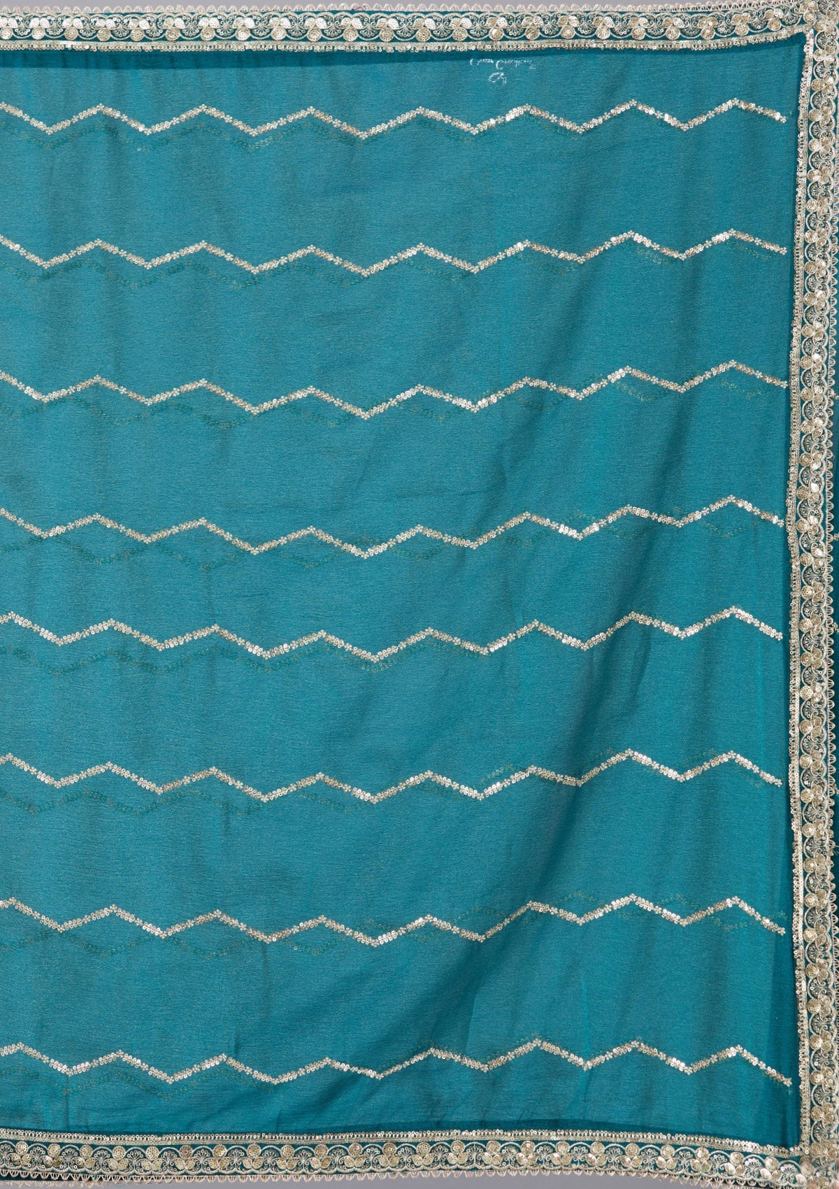 Peacock Blue Saree in Georgette fabric The Saree is elevated with Sequins embroidery It comes with an Unstitched blouse Comes with the Koskii promise of premium quality.