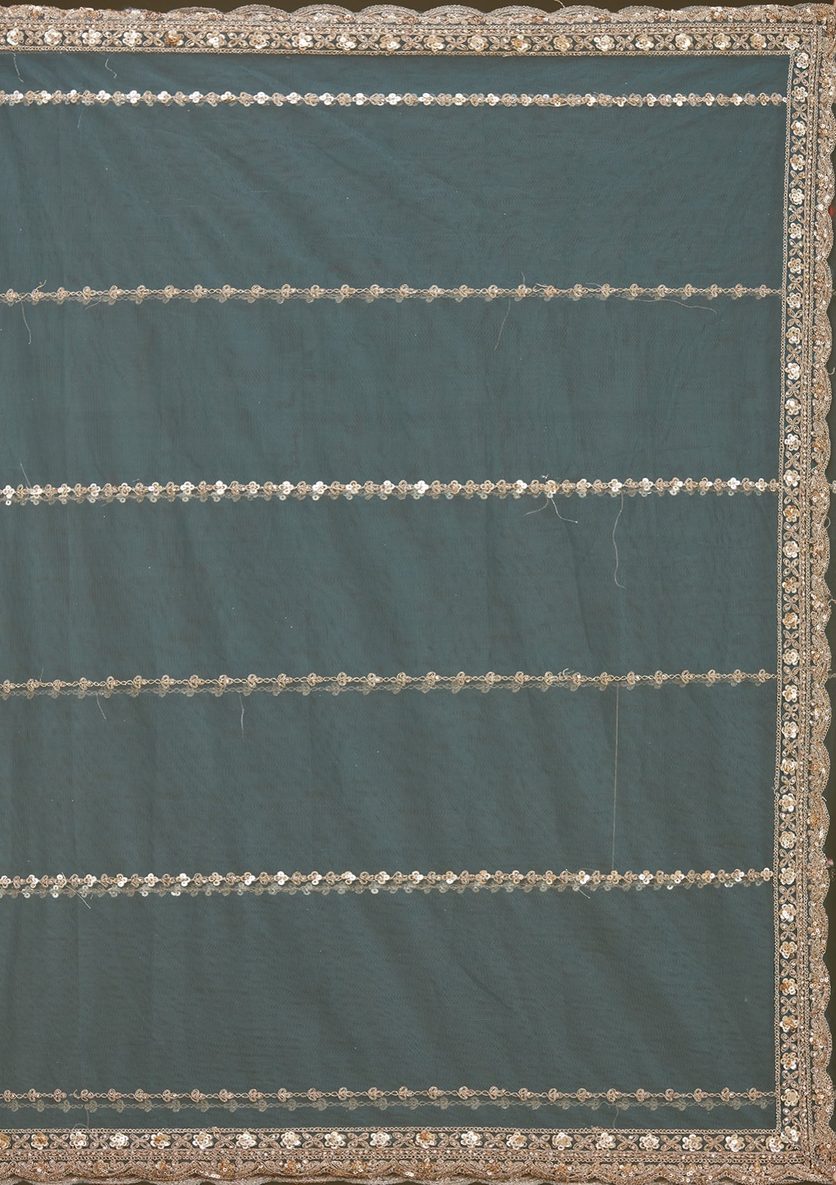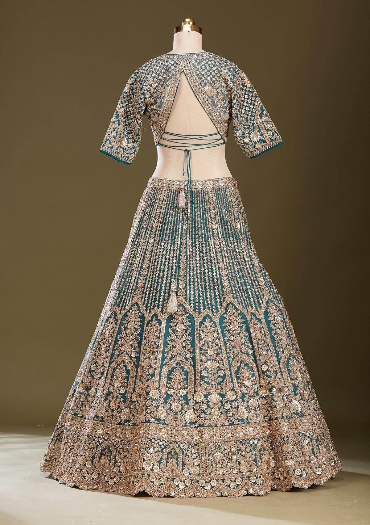Peacock Blue Readymade Lehenga in Net fabric. The Lehenga is embellished with Sequins embroidery. Accompanied with an Readymade blouse and dupatta. Comes with the Koskii promise of premium quality.