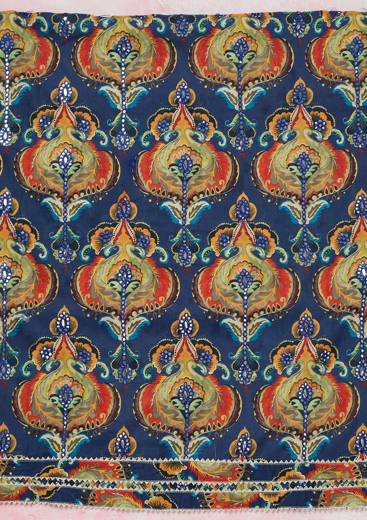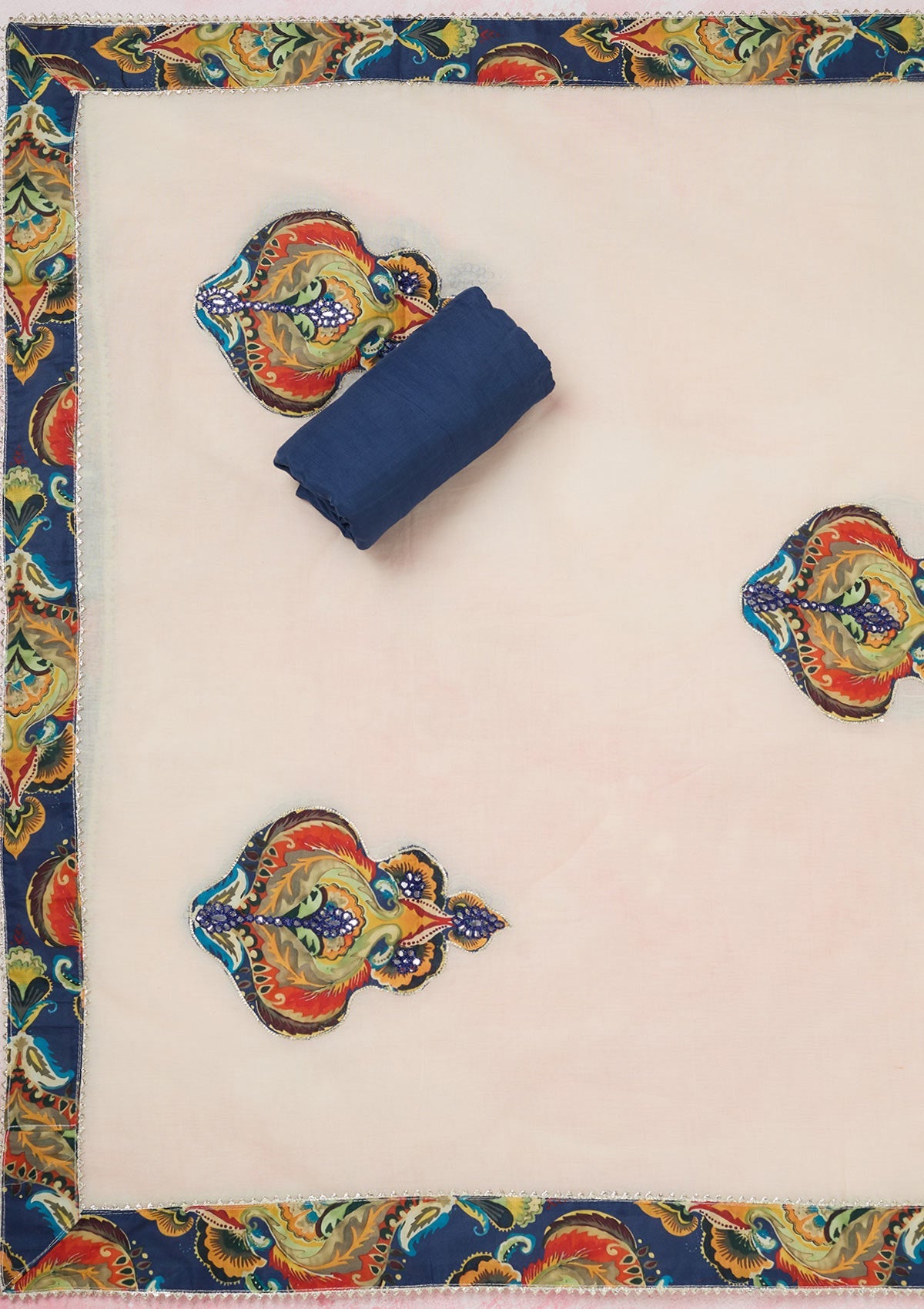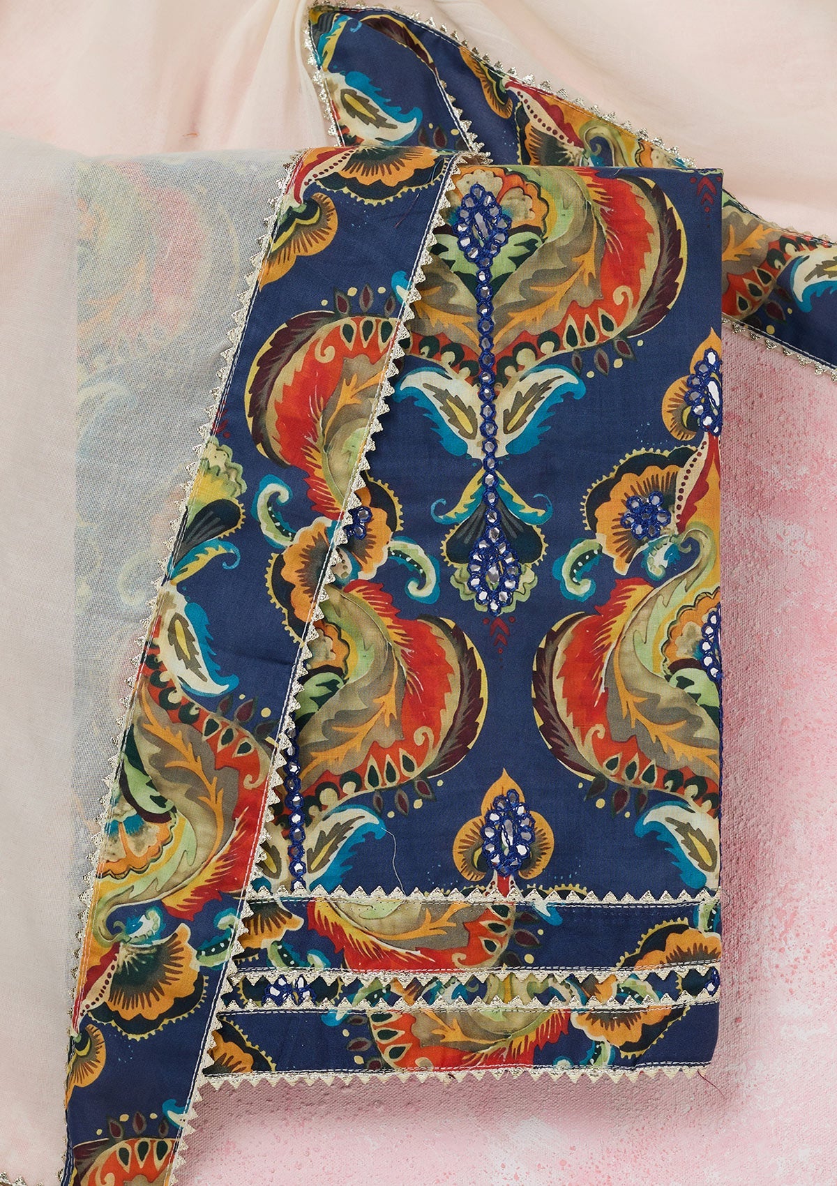 Peacock Blue Threadwork Cotton Unstitched Salwar Suit