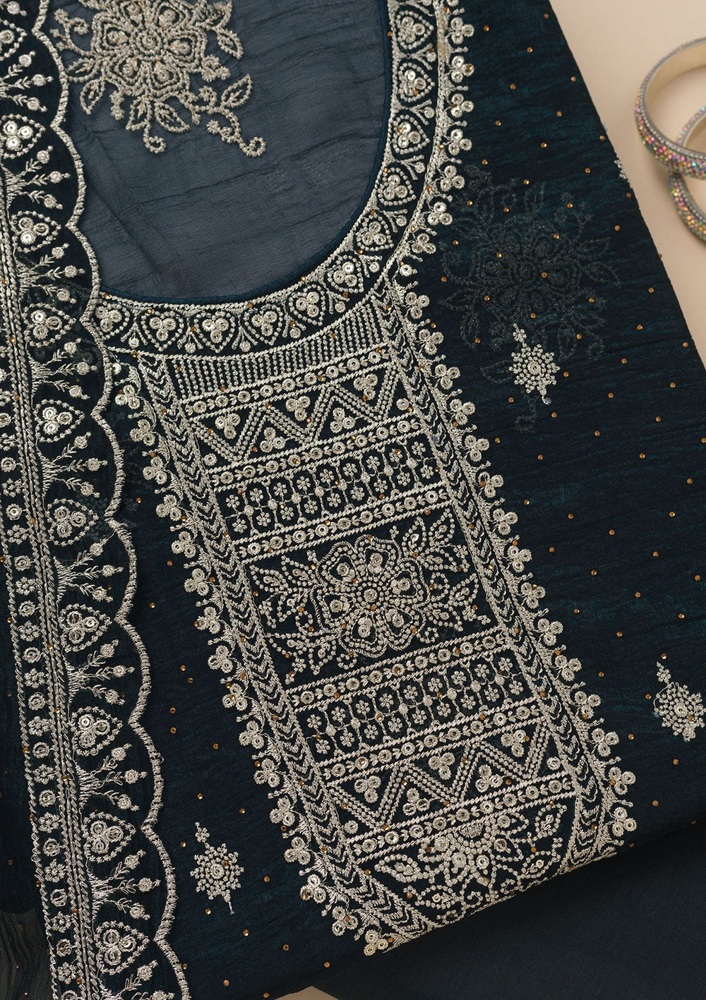 Peacock Blue Zariwork Art Silk Unstitched Salwar Suit