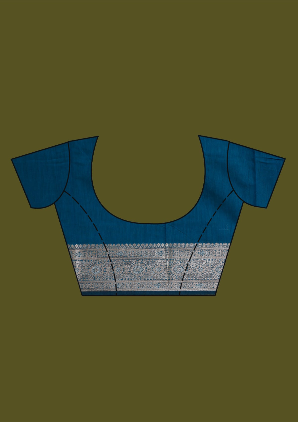 Peacock Blue Silk_Saree in Art Silk fabric. The Silk_Saree is elevated with Zariwork embroidery. It comes with an Unstitched blouse. Comes with the Koskii promise of premium quality.