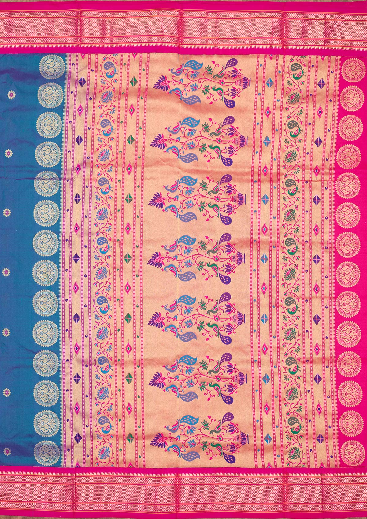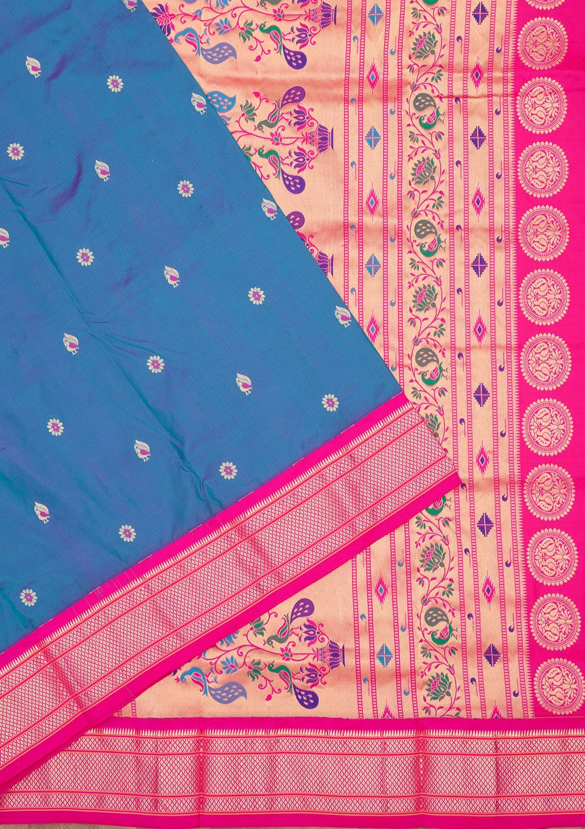 Peacock Blue Saree in Pure Silk fabric The Saree is elevated with Zariwork embroidery It comes with an Unstitched blouse Comes with the Koskii promise of premium quality.