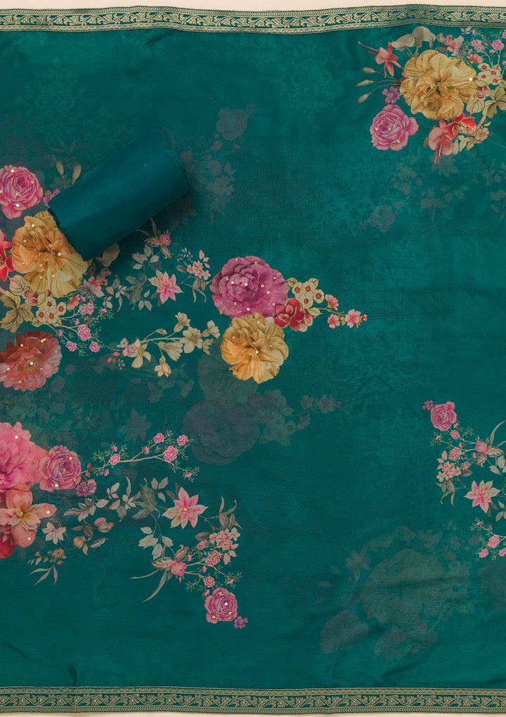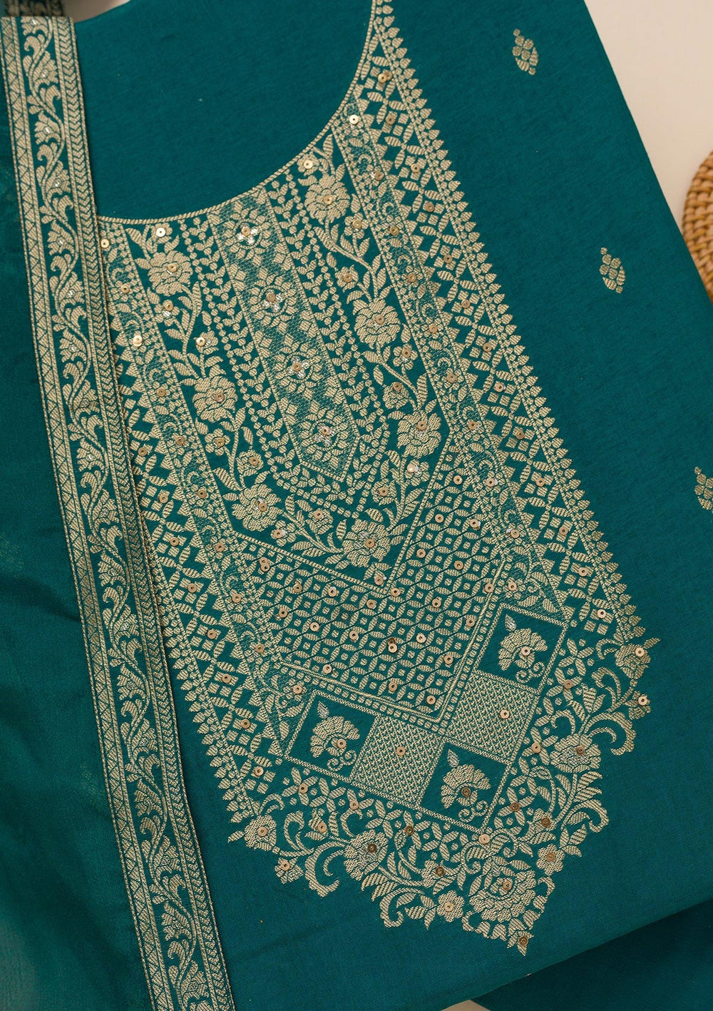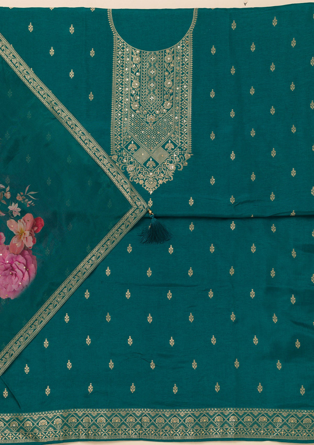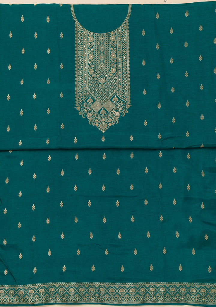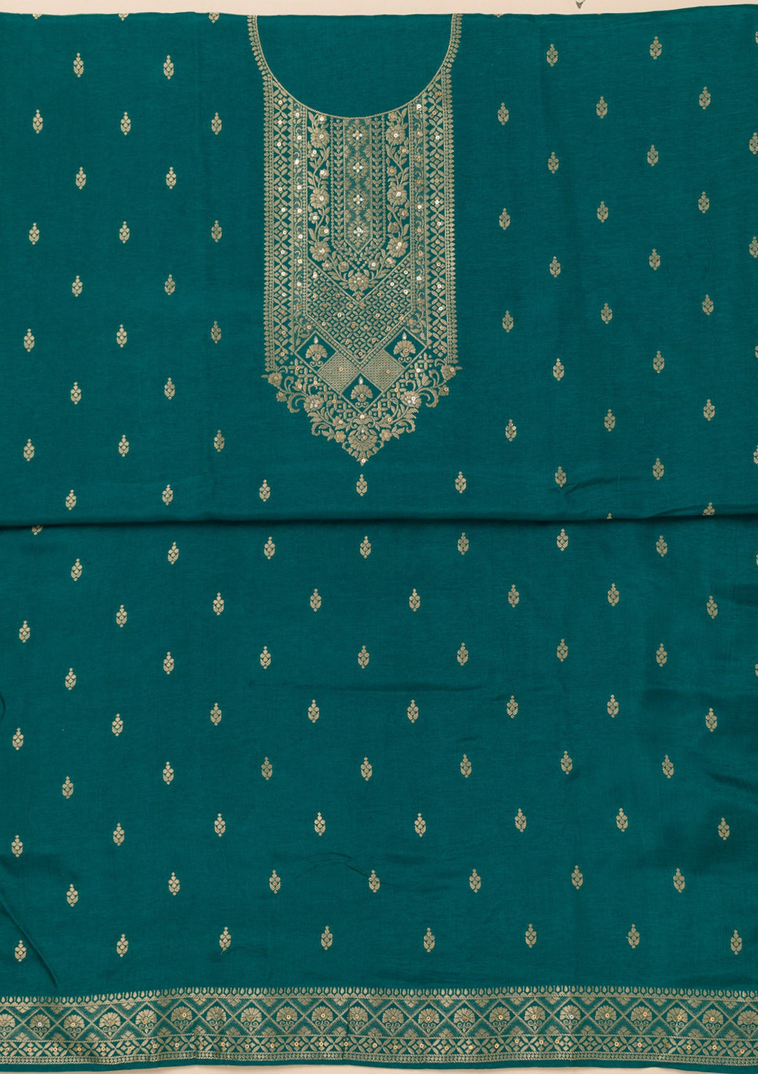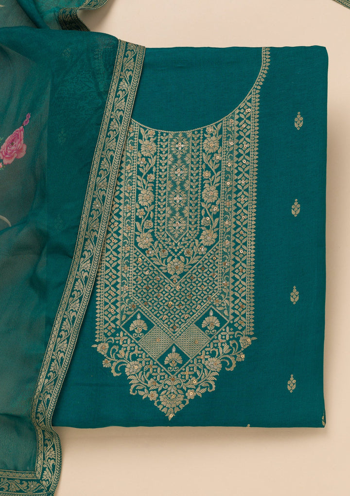 Peacock Blue Zariwork Semi Crepe Unstitched Salwar Suit