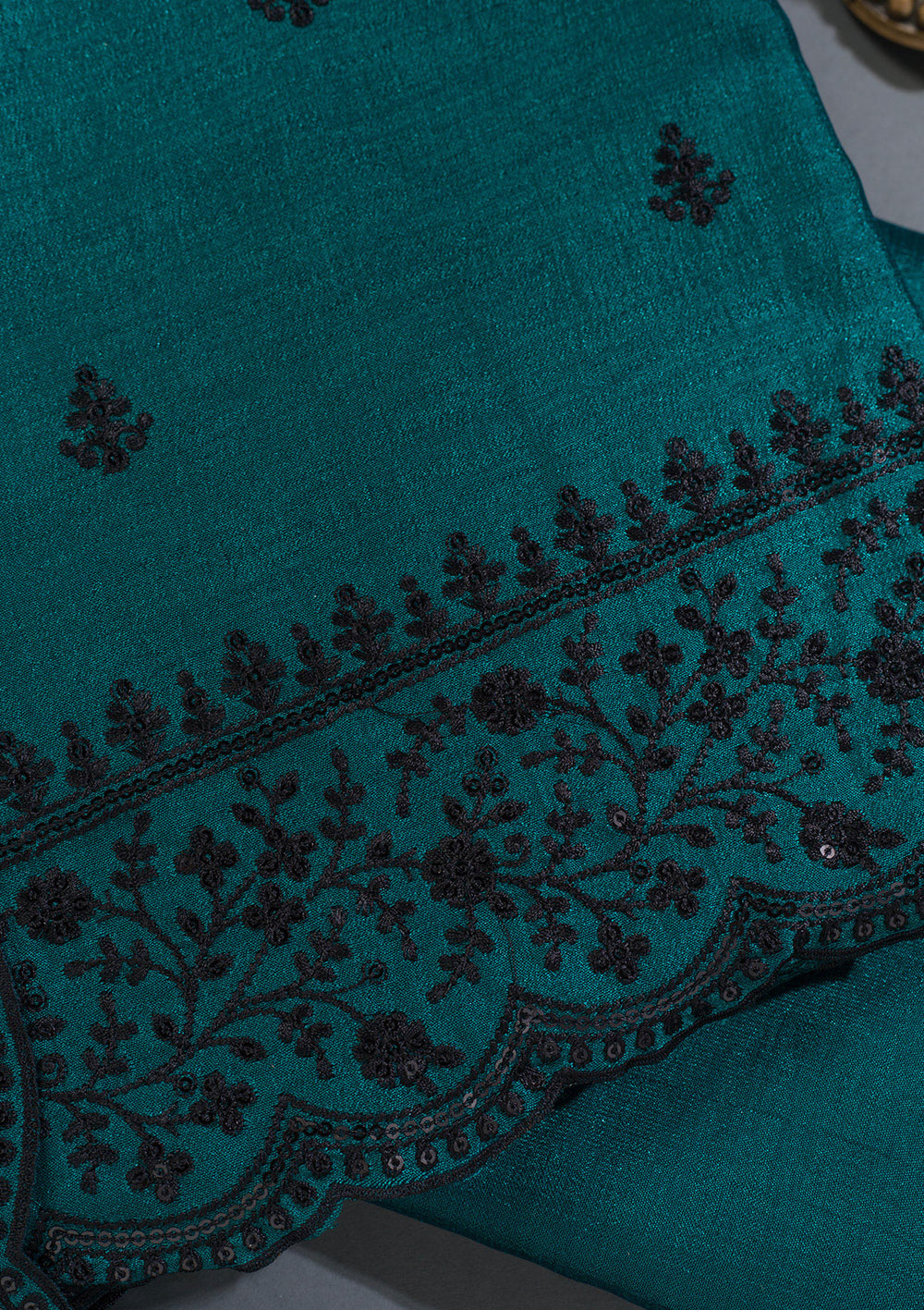 Peacock Green Threadwork Tissue Unstitched Salwar Suit