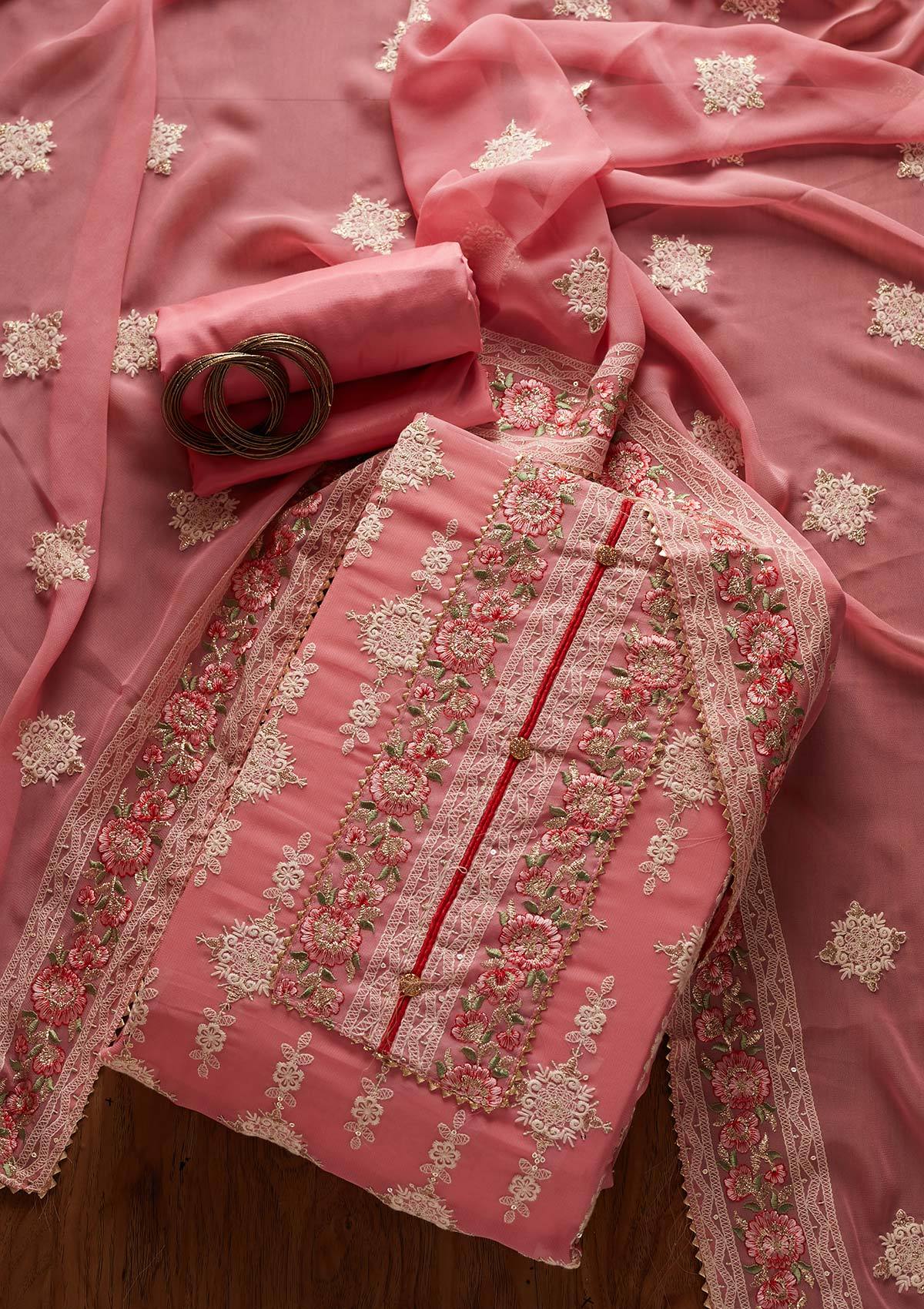 Pink Chikankari Georgette Unstitched Salwar Suit