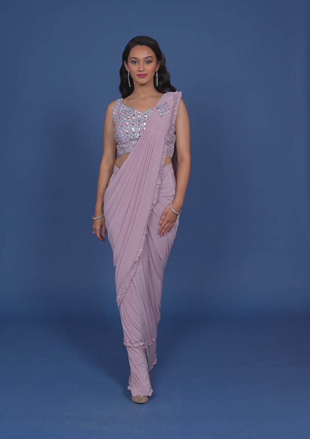 Pink Saree in Lycra fabric. The Saree is elevated with Mirrorwork embroidery. It comes with an Unstitched blouse. Comes with the Koskii promise of premium quality.