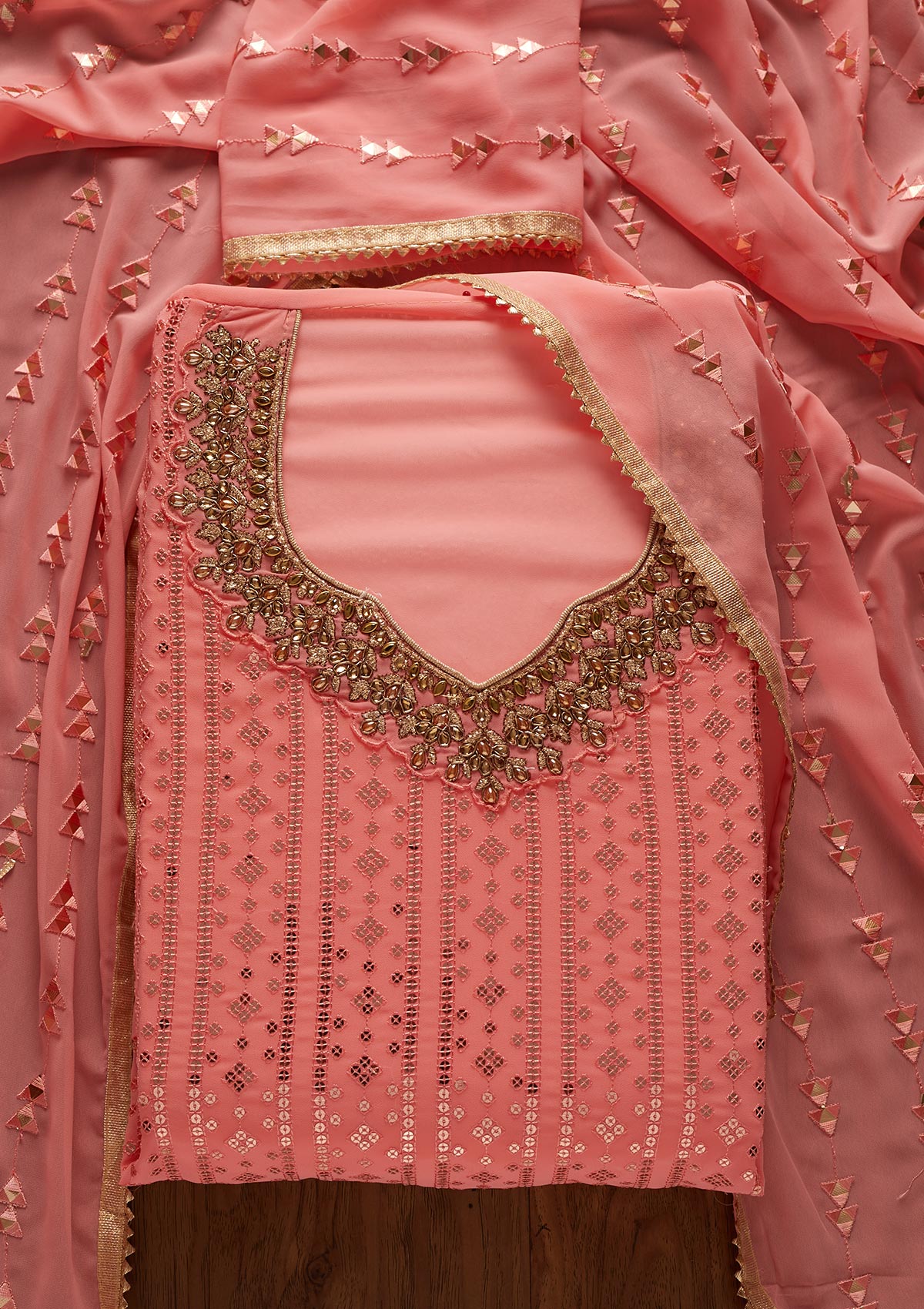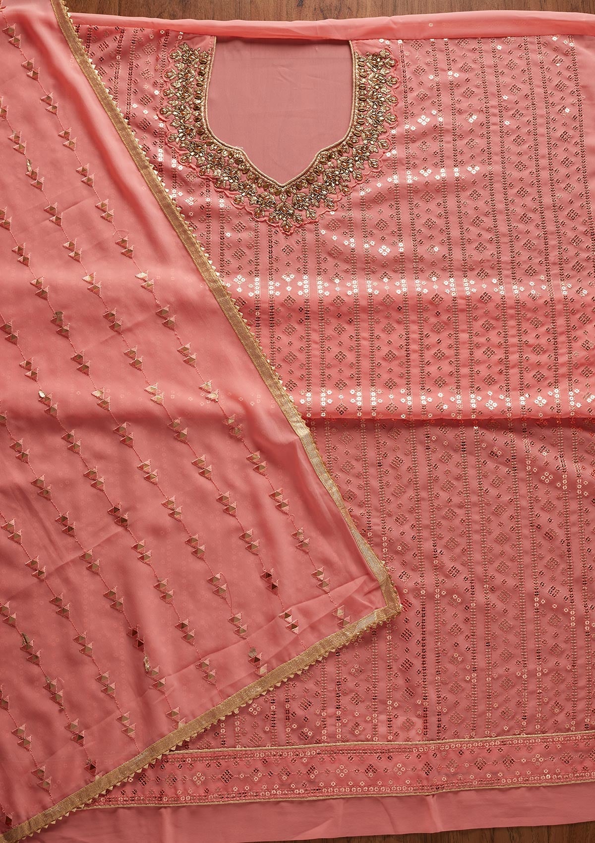 Pink Sequins Georgette Designer Unstitched Salwar Suit - koskii