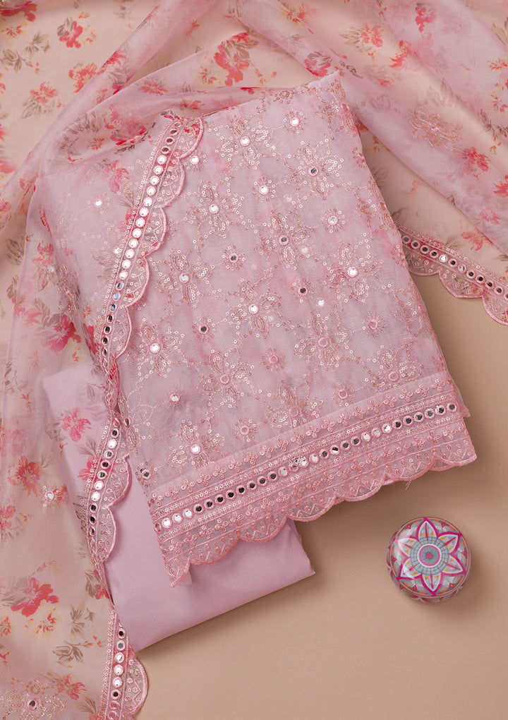 Pink Salwar Suit in Tissue fabric. The Salwar Suit is embellished with Sequins embroidery. Accompanied with a bottom and dupatta. Comes with the Koskii promise of premium quality.