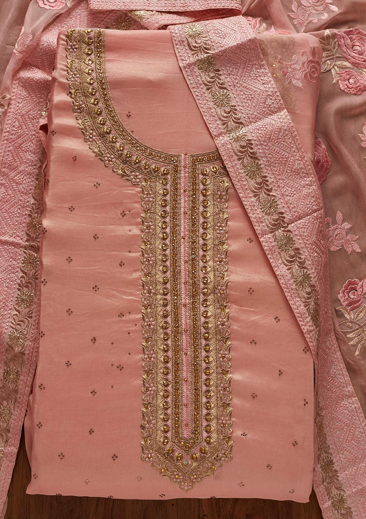 Pink Stonework Soft Silk Unstitched Salwar Suit