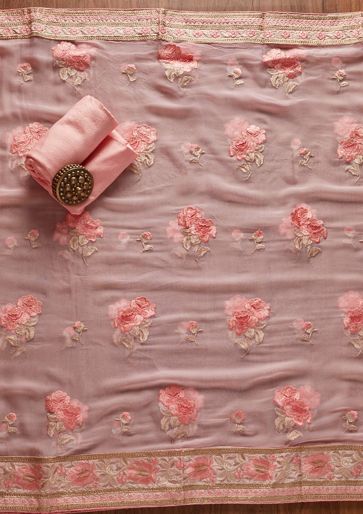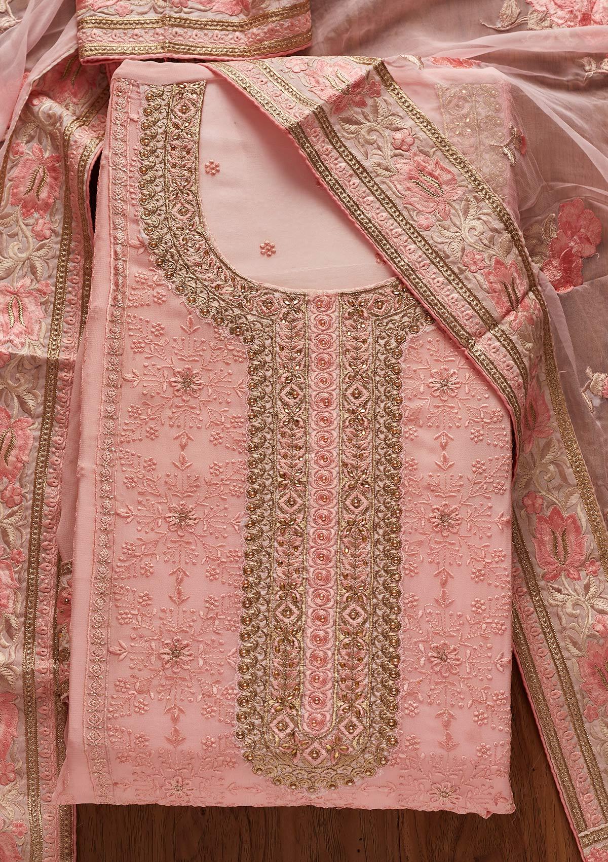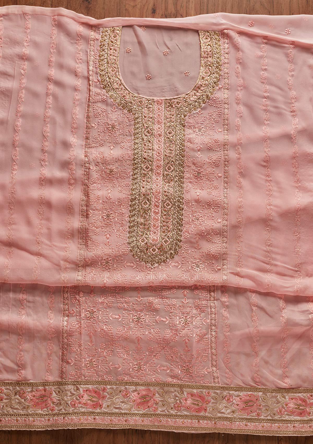 Pink Salwar Suit In Georgette Fabric. The Salwar Suit Is Embellished With Stonework Embroidery. Accompanied with an unstitched bottom and dupatta. Comes With The Koskii Promise Of Premium Quality.