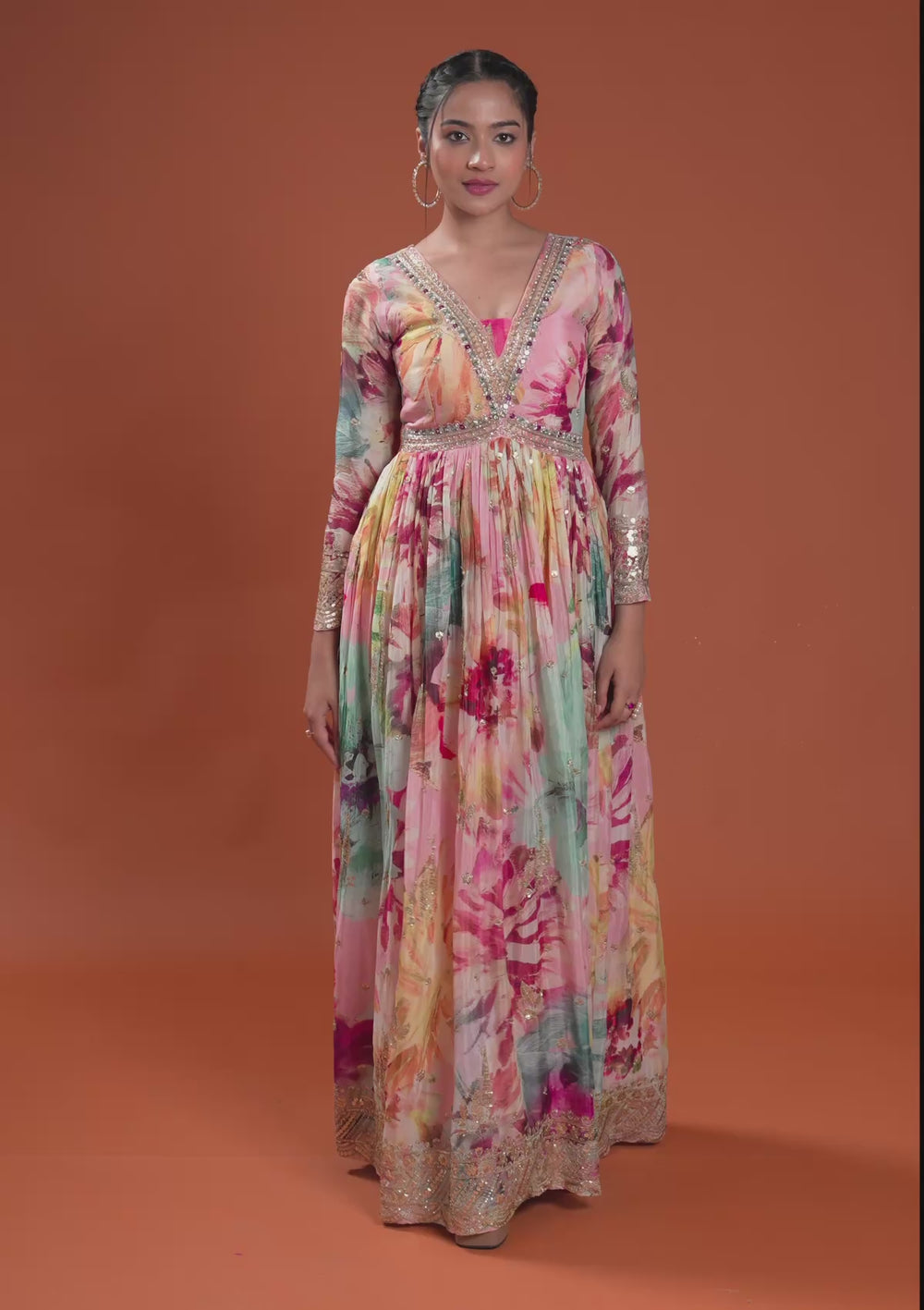 Pink Stonework Semi Crepe Readymade Salwar Suit