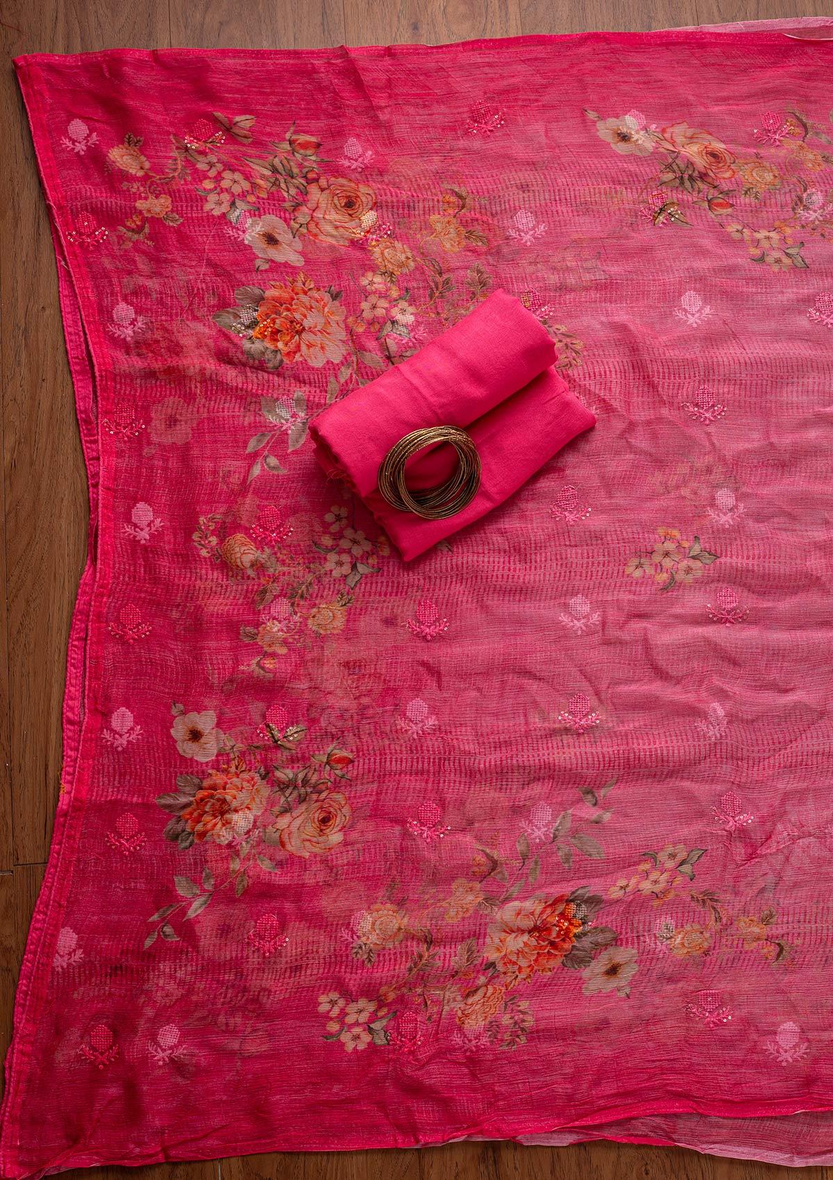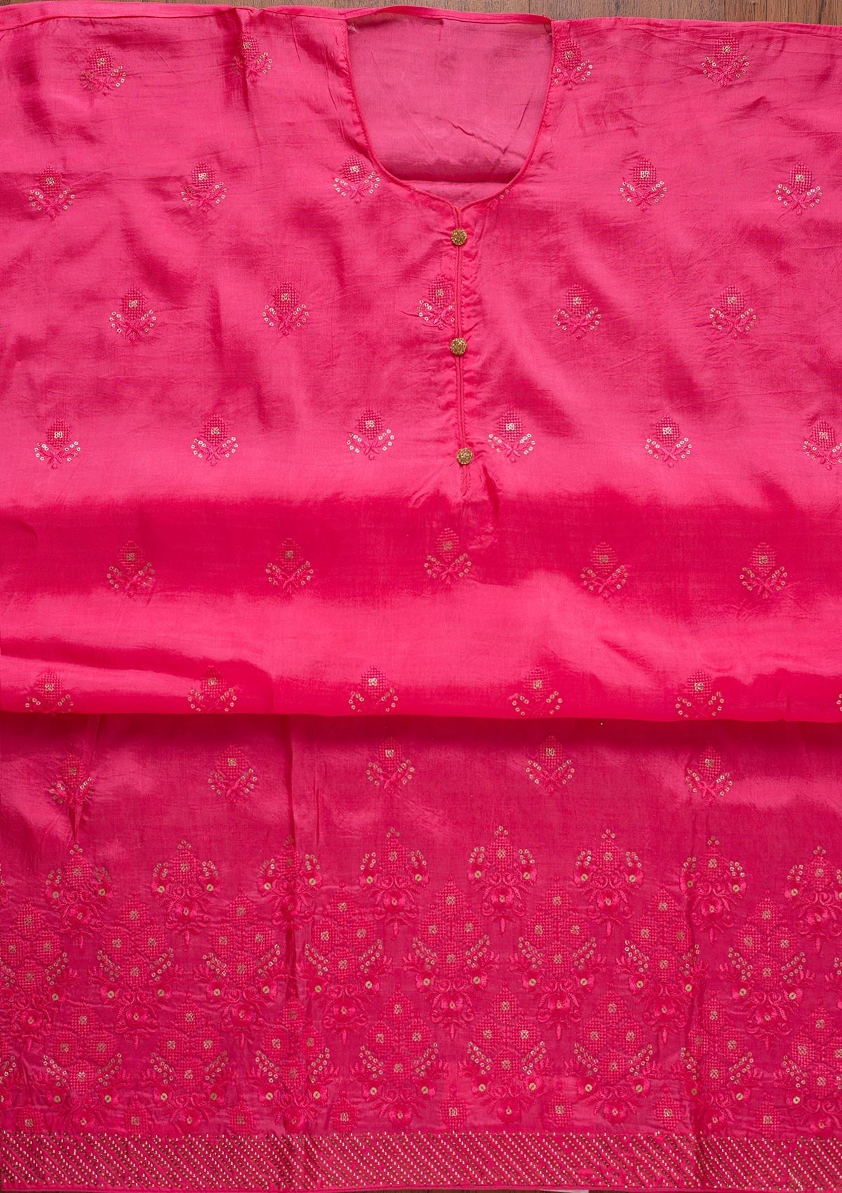 Pink Salwar Suit In Satin Fabric. The Salwar Suit Is Embellished With Swarovski stone work. Accompanied with an unstitched bottom and dupatta. Comes With The Koskii Promise Of Premium Quality.