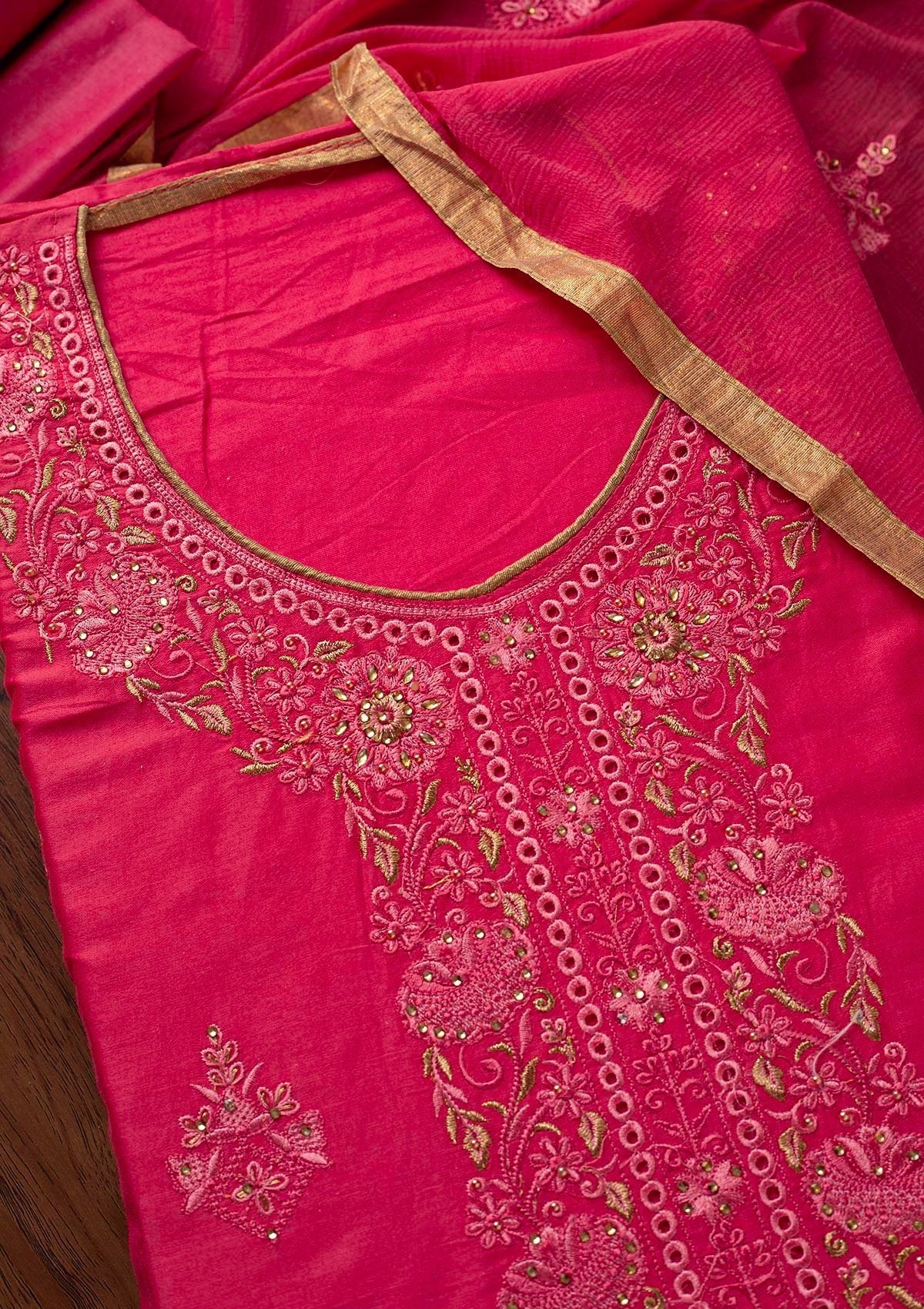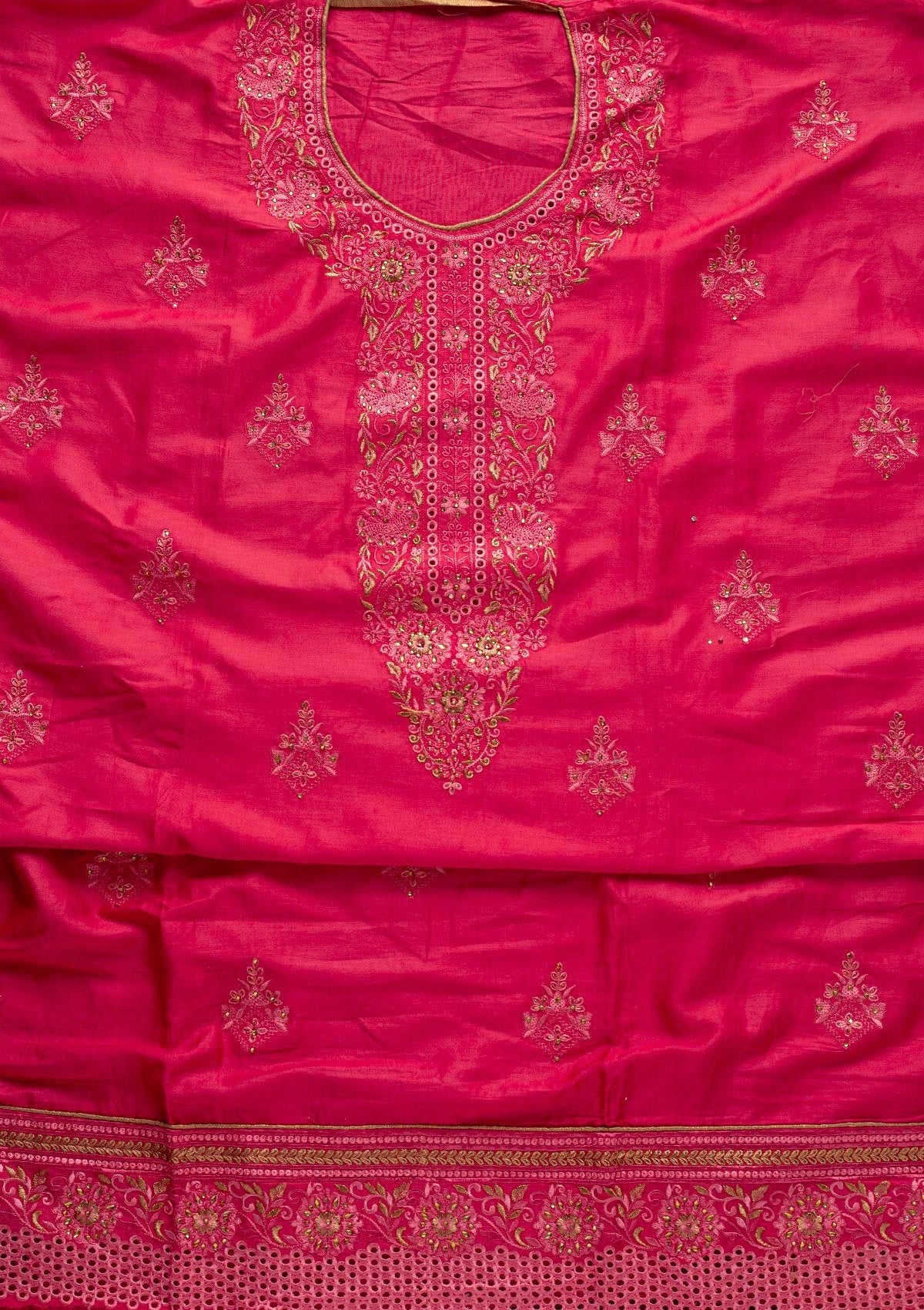 Pink Threadwork Chanderi Unstitched Salwar Suit