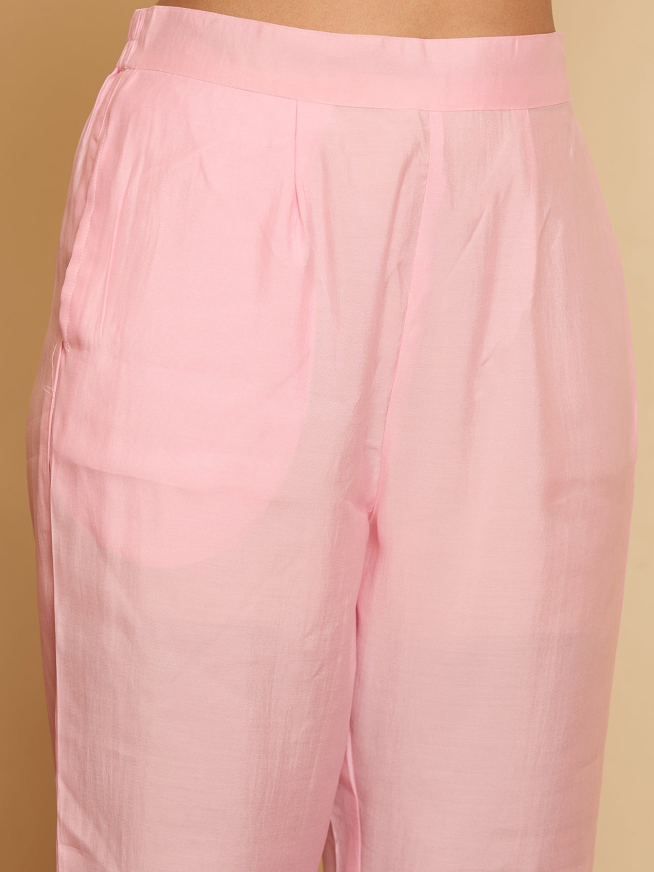 Pink Salwar Suit in Chanderi fabric. The Salwar Suit is embellished with Threadwork embroidery. Accompanied with a bottom and dupatta. Comes with the Koskii promise of premium quality.