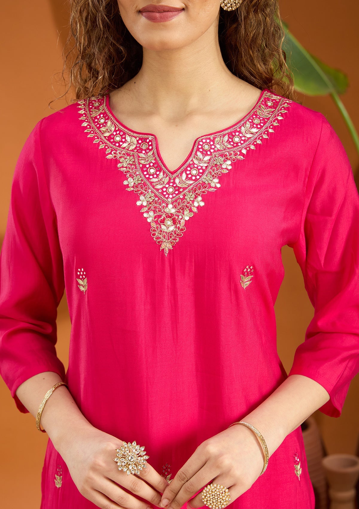 Pink Salwar Suit in Chanderi fabric. The Salwar Suit is embellished with Threadwork embroidery. Accompanied with a bottom and dupatta. Comes with the Koskii promise of premium quality.