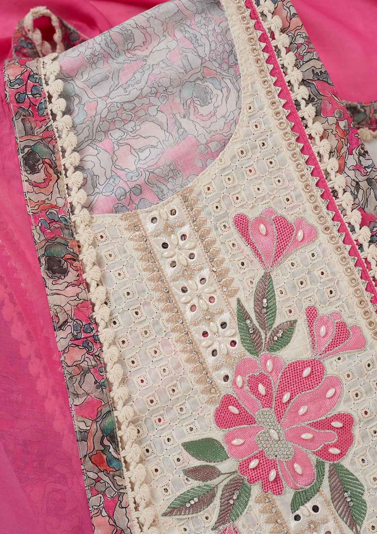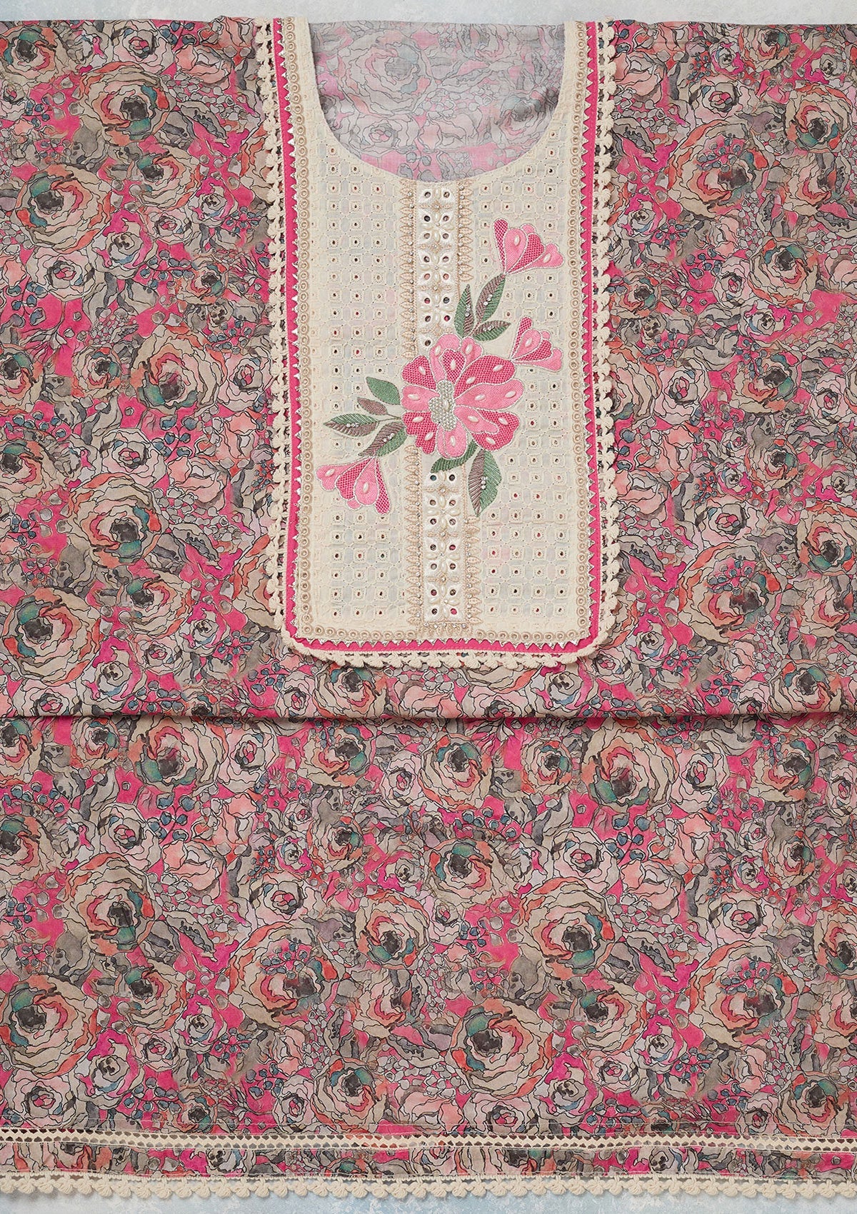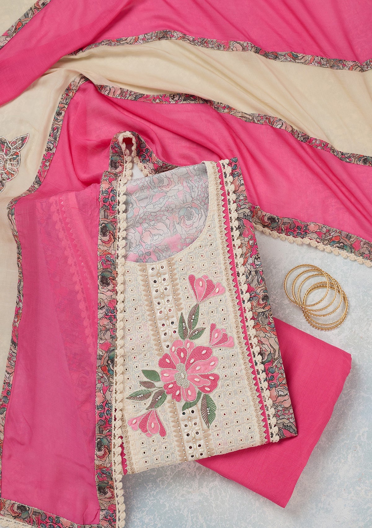 Pink Threadwork Cotton Unstitched Salwar Suit