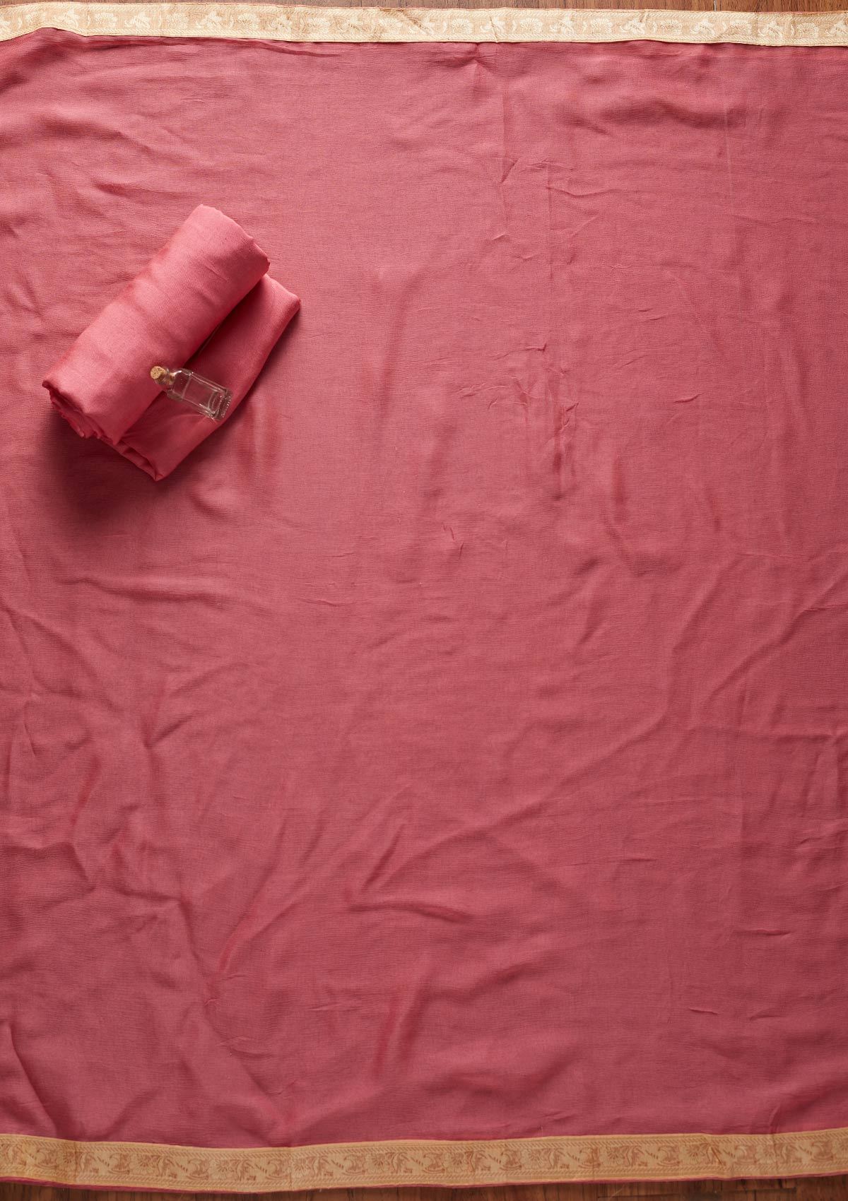 Pink Salwar Suit In Brocade Fabric. The Salwar Suit Is Embellished With Zariwork Embroidery. Accompanied with an unstitched bottom and dupatta. Comes With The Koskii Promise Of Premium Quality.
