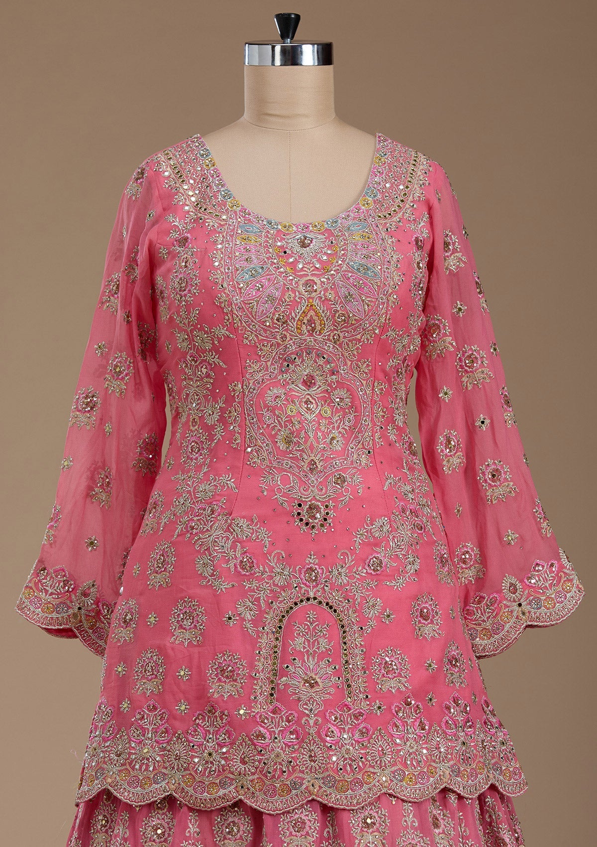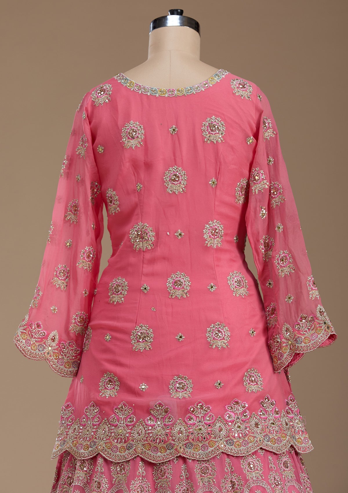 Pink Readymade Lehenga in Crepe fabric The Lehenga is embellished with Zariwork embroidery Accompanied with an Readymade blouse and dupatta Comes with the Koskii promise of premium quality.