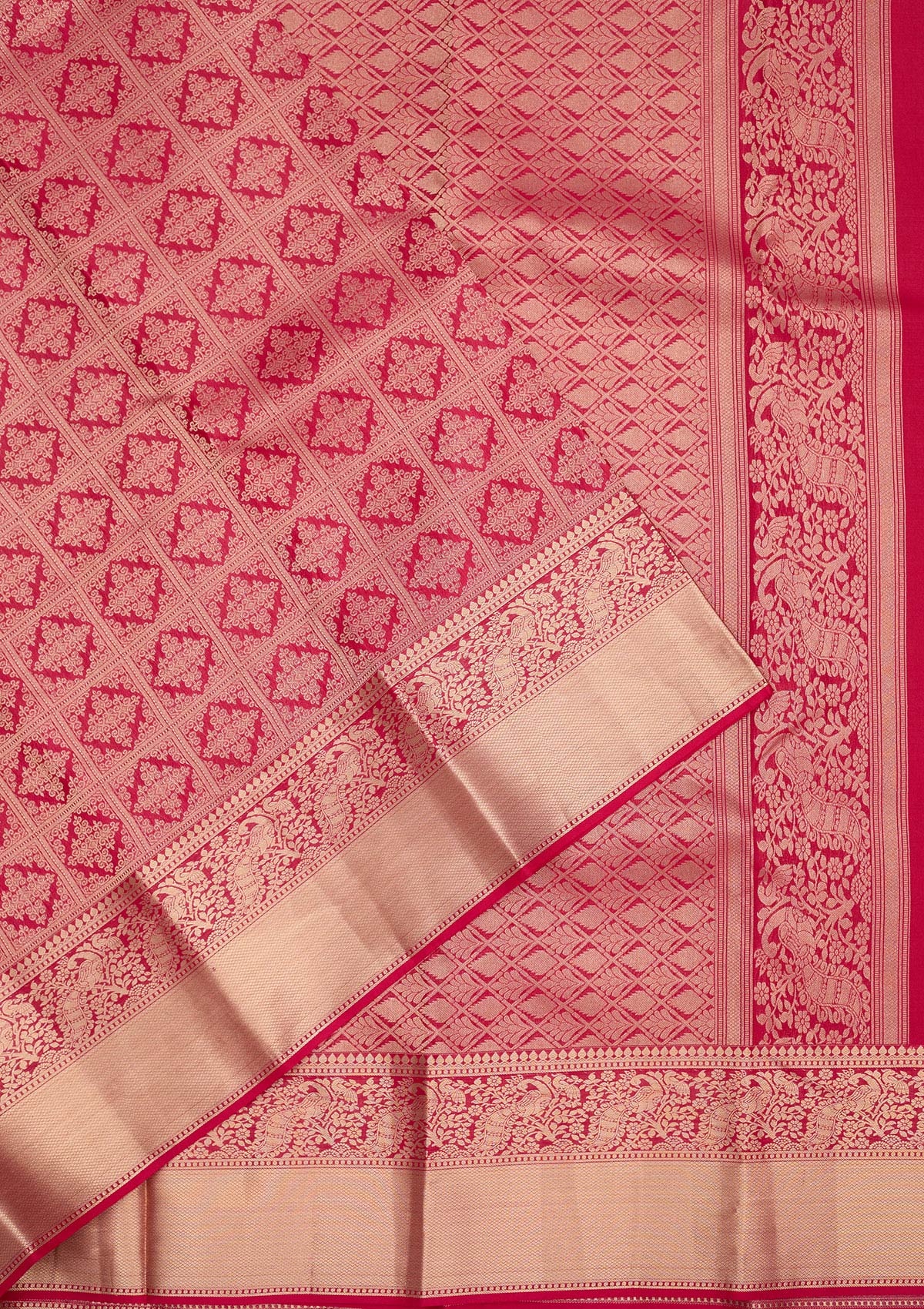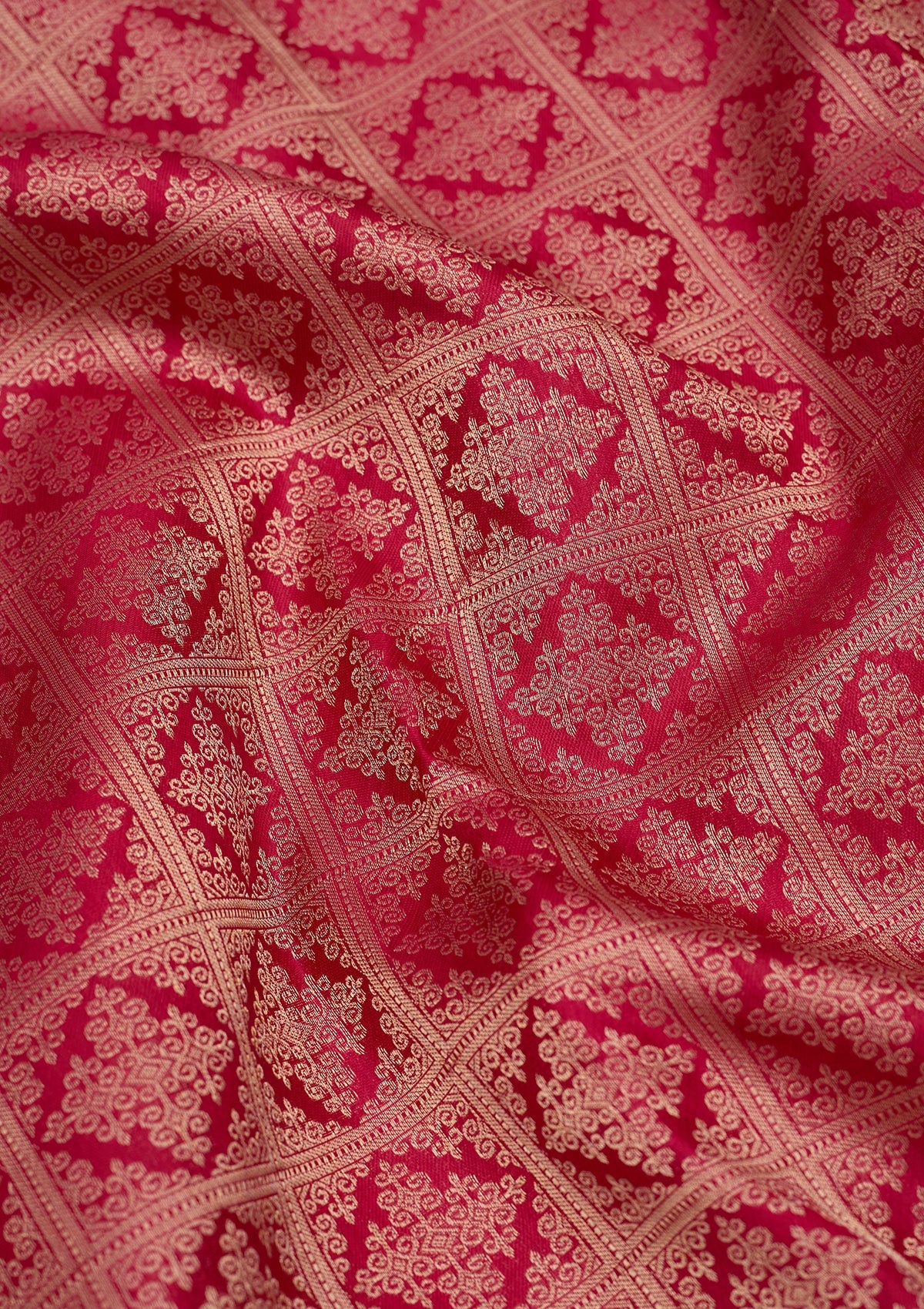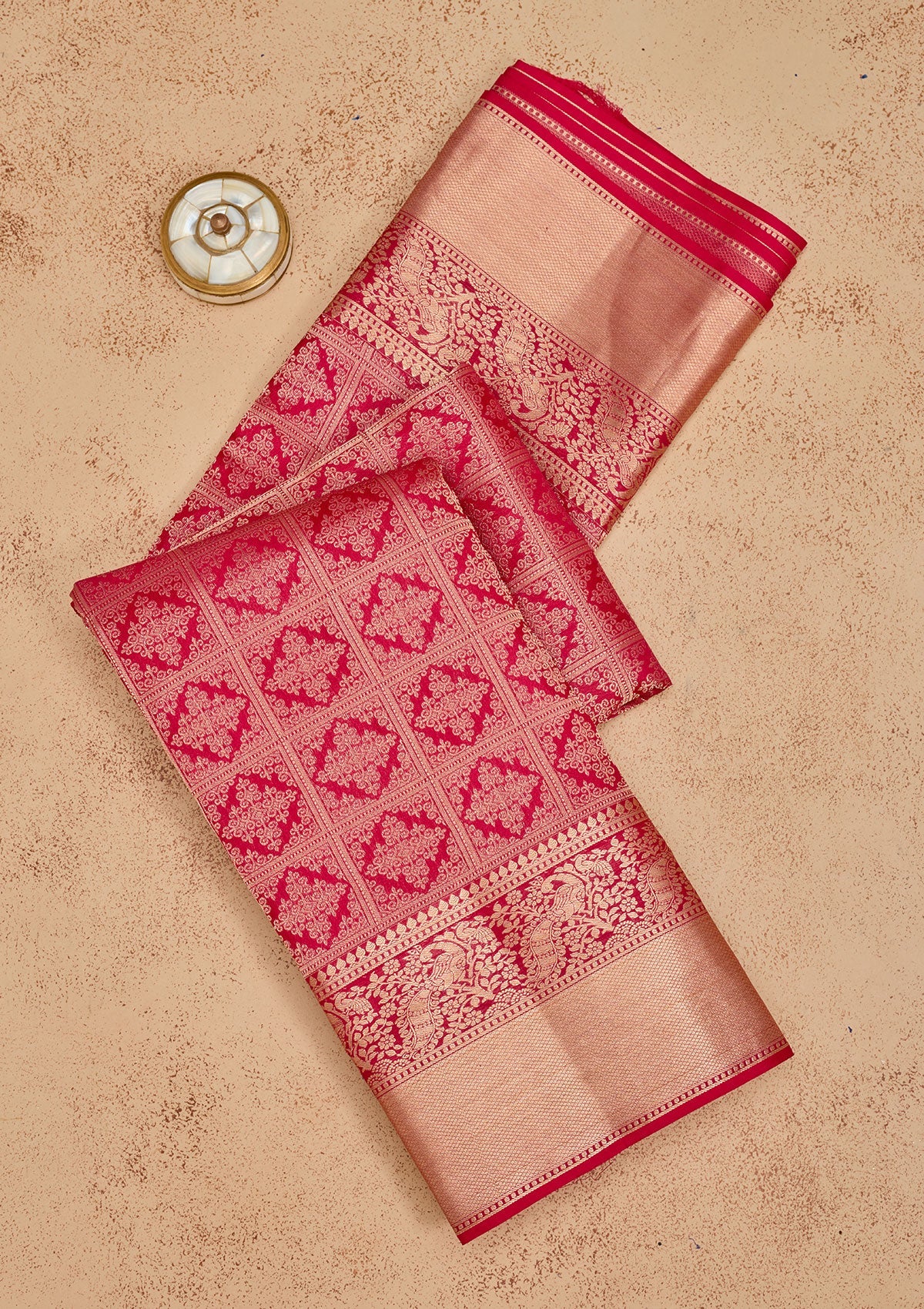 Pink Saree in Pure Silk fabric The Saree is elevated with Zariwork embroidery It comes with an Unstitched blouse Comes with the Koskii promise of premium quality.