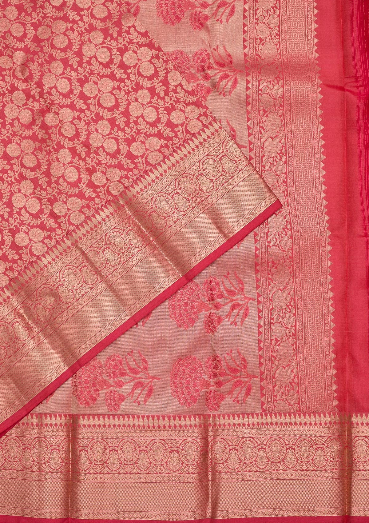 Pink Silk Saree in Pure Silk fabric The Silk Saree is elevated with Zariwork embroidery It comes with an Unstitched blouse Comes with the Koskii promise of premium quality.