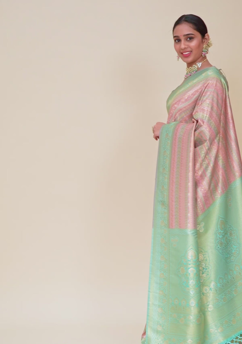 Pink Saree in Silk fabric. The Saree is elevated with Zariwork embroidery. It comes with an Unstitched blouse. Comes with the Koskii promise of premium quality.