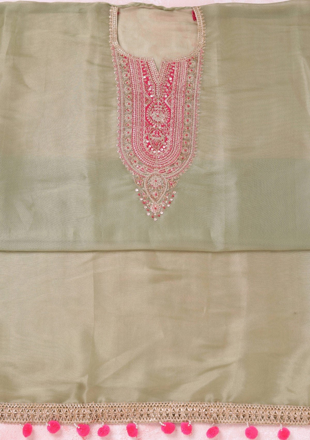 Pista Green Cording Tissue Unstitched Salwar Suit