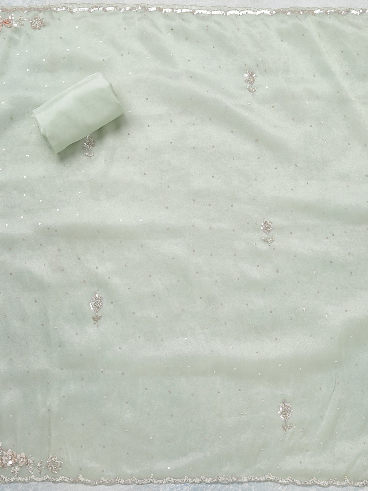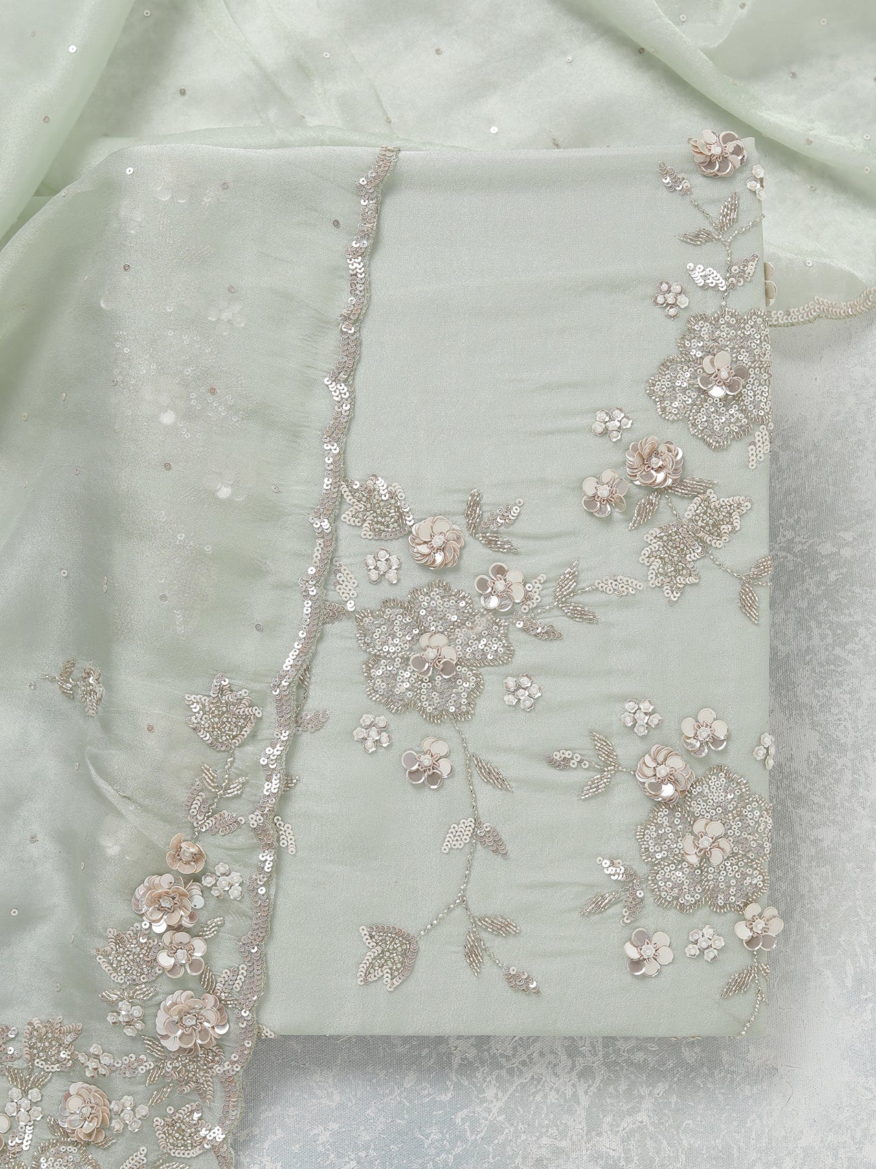 Pista Green Cutdana Tissue Unstitched Salwar Suit