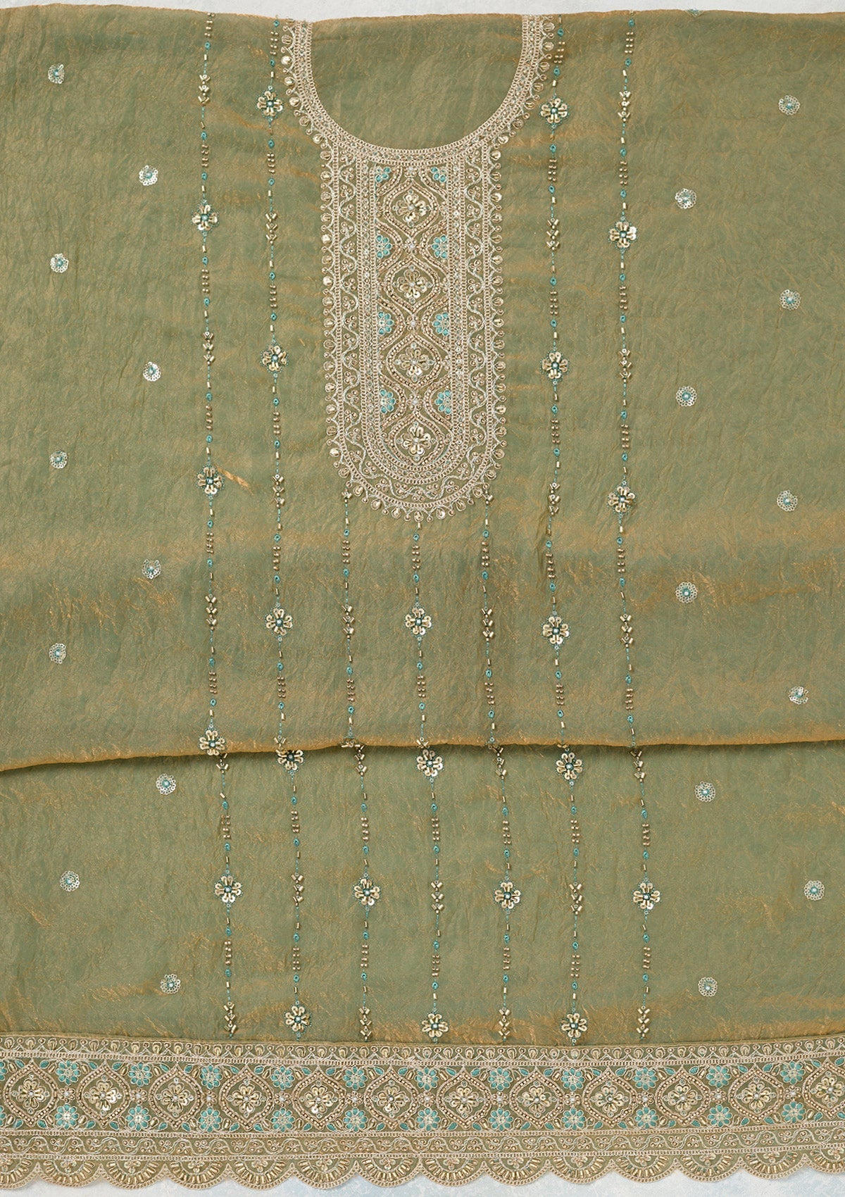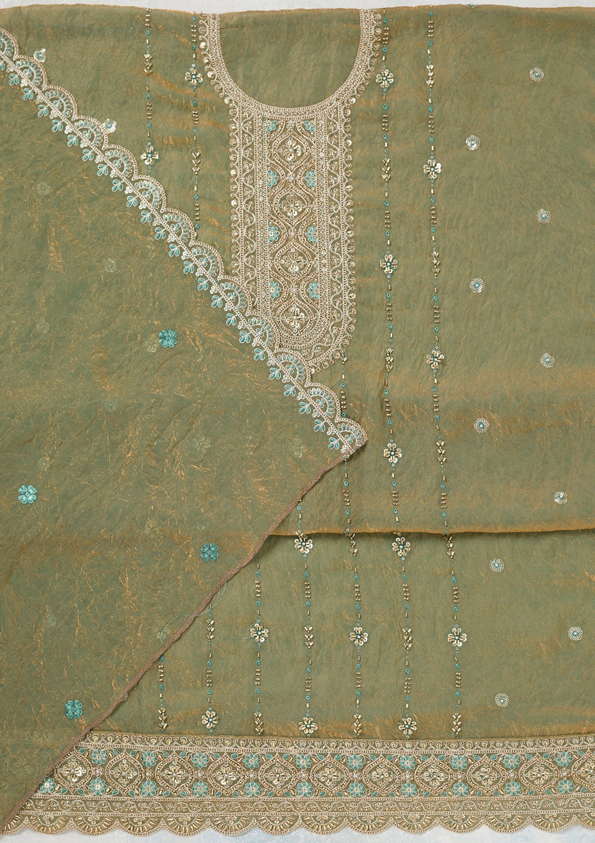 Pista Green Cutdana Tissue Unstitched Salwar Suit