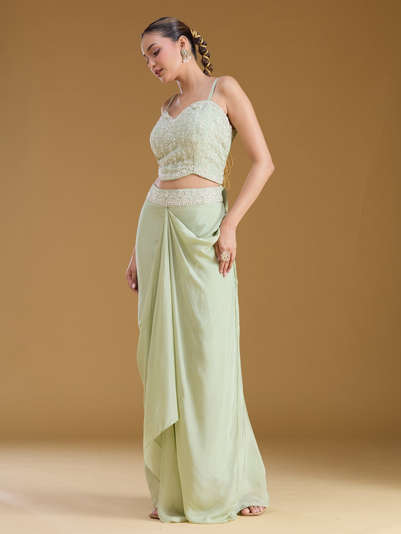 Pista Green Cutdana Tissue Readymade Salwar Suit