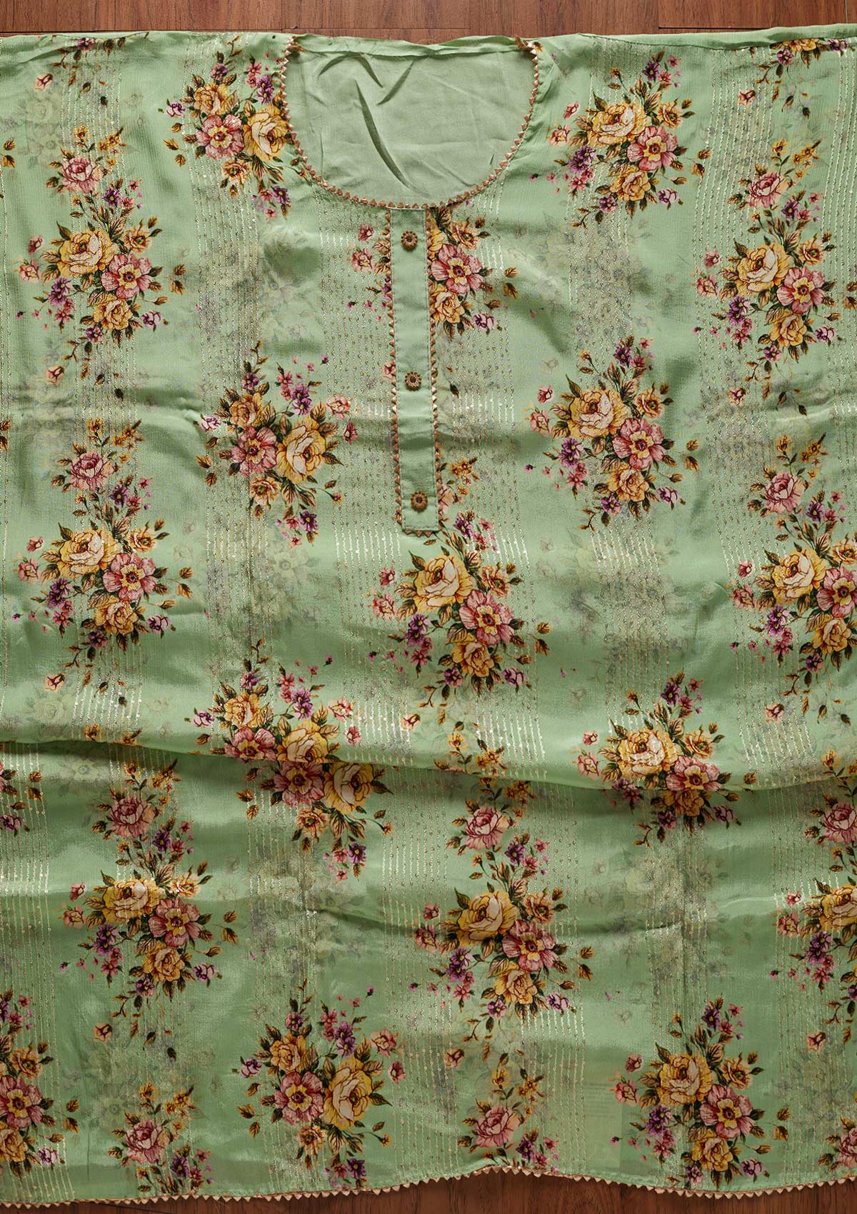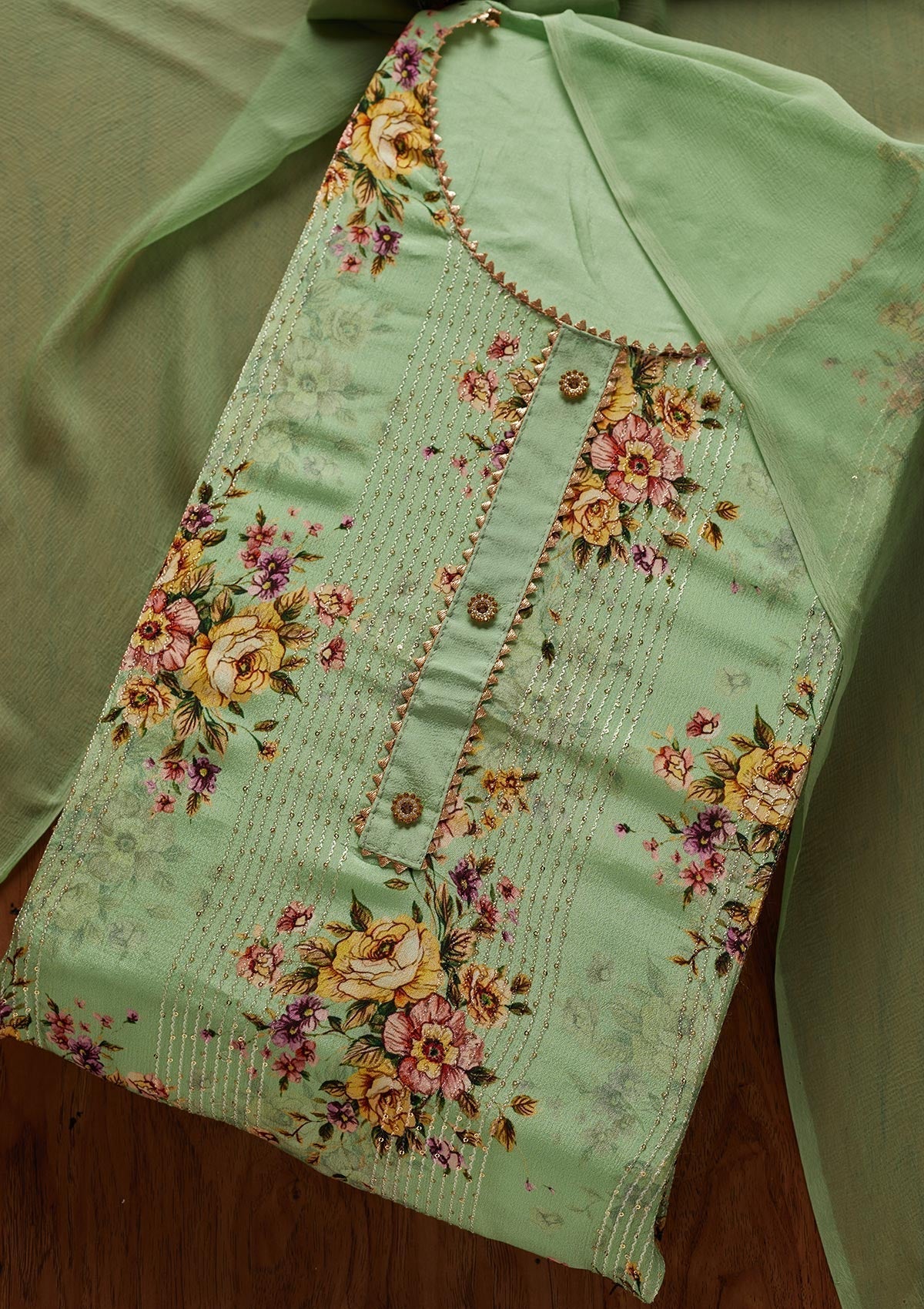 Pista Green Salwar Suit In Semi Crepe Fabric. The Salwar Suit Is Embellished With Print Embroidery. Accompanied with an unstitched bottom and dupatta. Comes With The Koskii Promise Of Premium Quality.