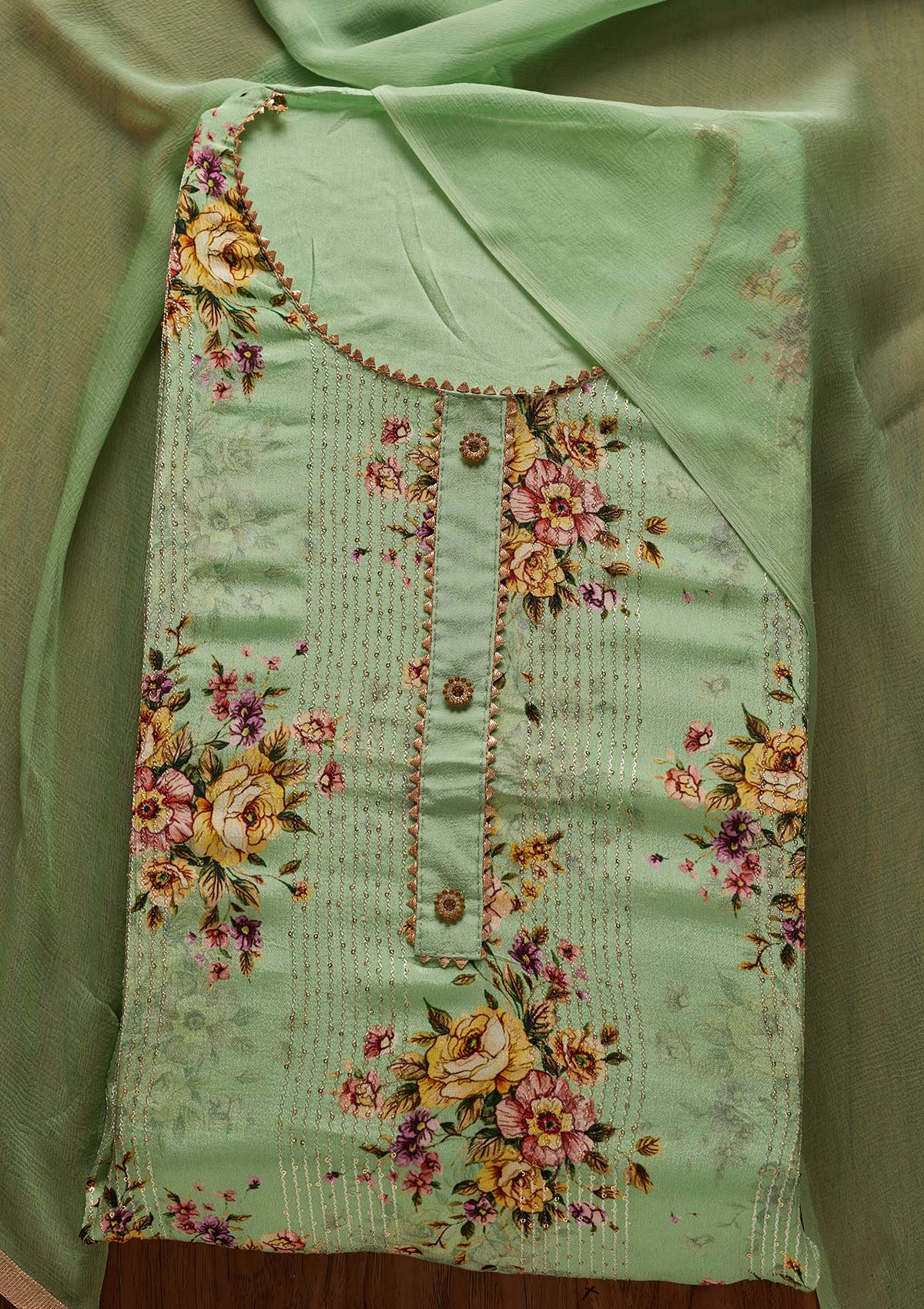 Pista Green Print Semi Crepe Unstitched Salwar Suit