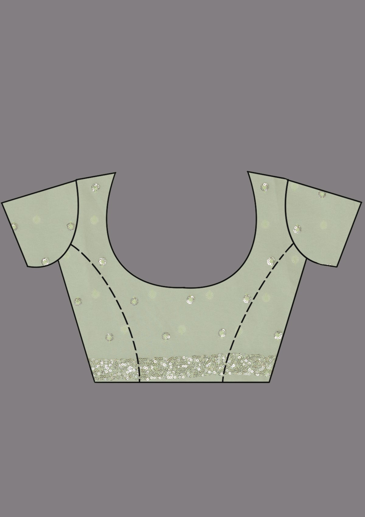 Pista Green Saree in Georgette fabric. The Saree is elevated with Sequins embroidery. It comes with an Unstitched blouse. Comes with the Koskii promise of premium quality.