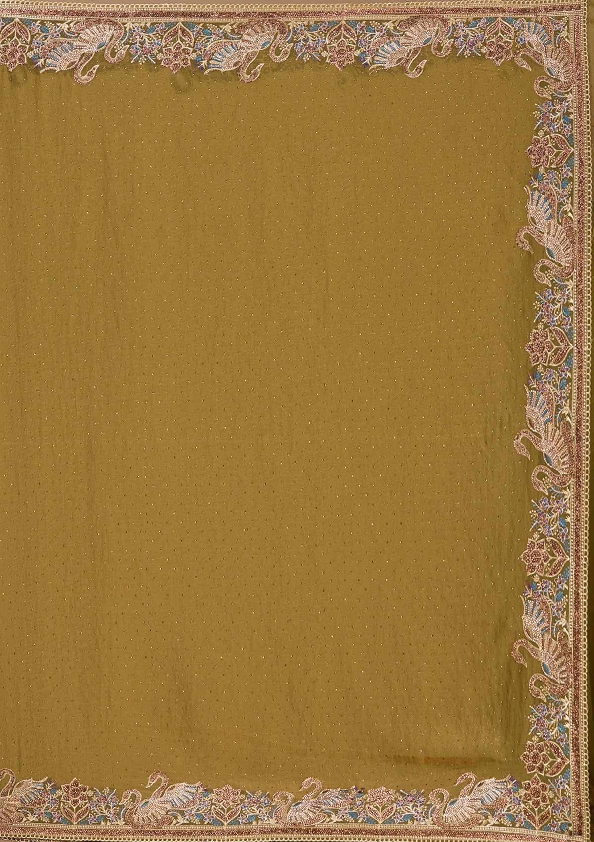 Sea Green Saree in Tissue fabric. The Saree is elevated with Stonework (Gold) embroidery. It comes with an Unstitched blouse. Comes with the Koskii promise of premium quality.
