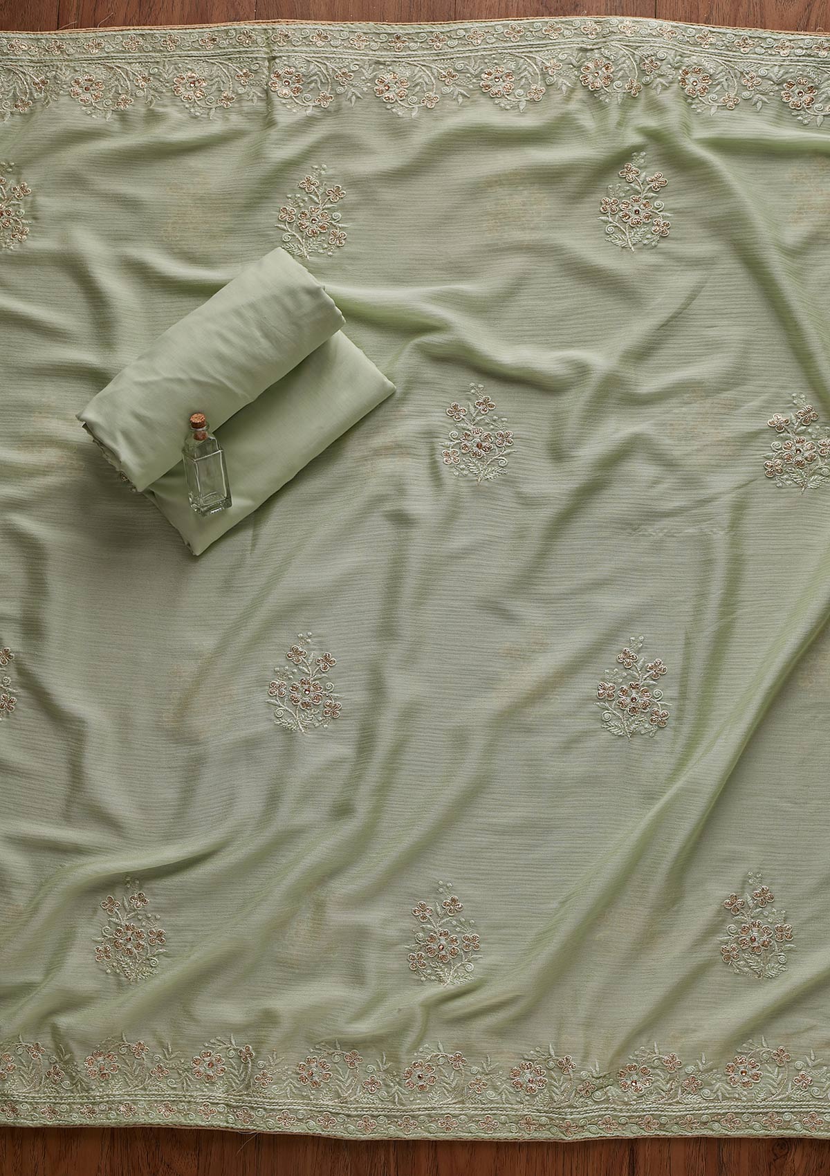 Pista Green Salwar Suit In Semi Crepe Fabric. The Salwar Suit Is Embellished With Swarovski stone work. Accompanied with an unstitched bottom and dupatta. Comes With The Koskii Promise Of Premium Quality.