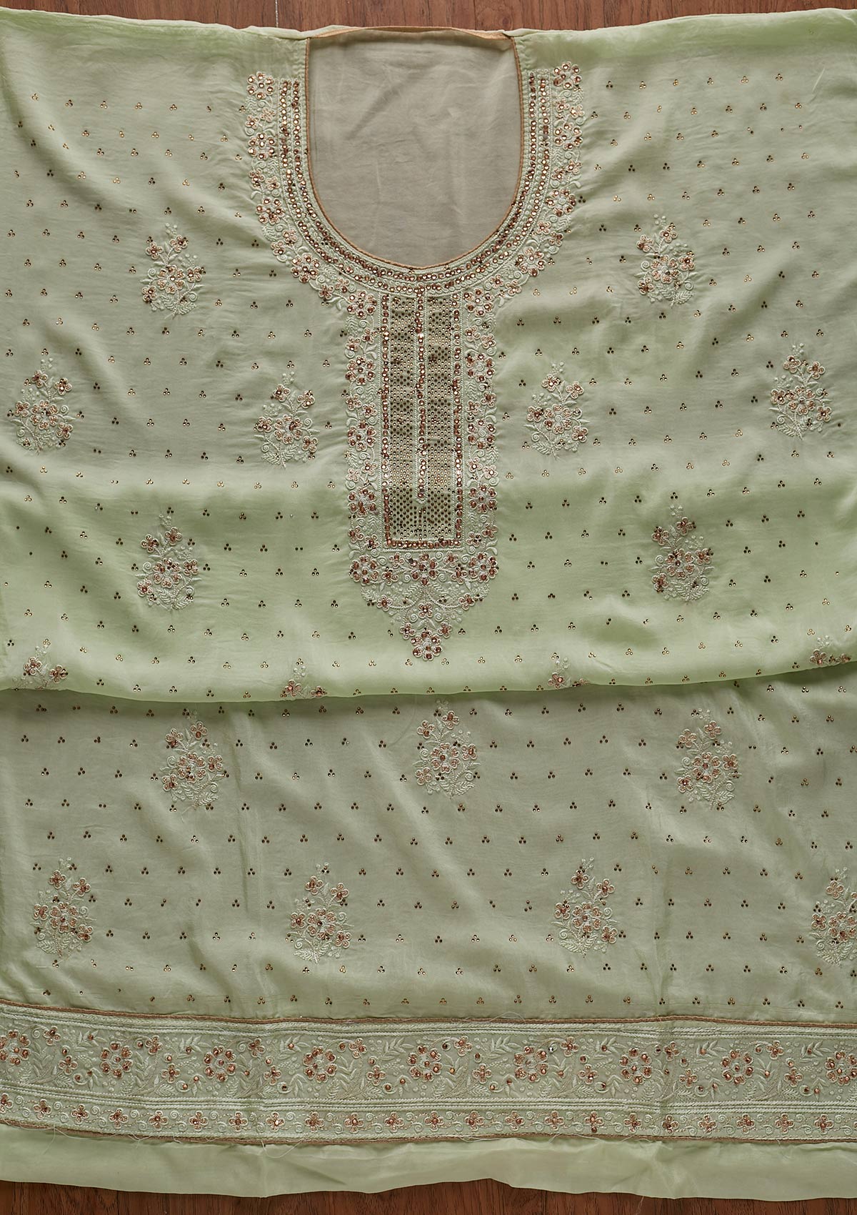 Pista Green Swarovski Semi Crepe Unstitched Salwar Suit